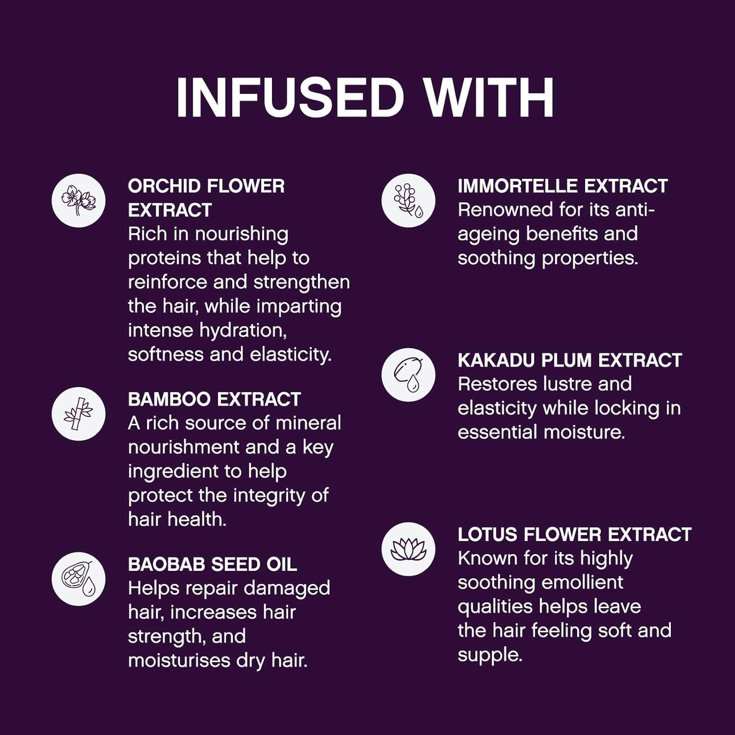 - Hair Hydration Ingredients: Formulated with Amino Acids, Baobab Seed Oil, and Orchid Flower Extract, this hair treatment strengthens, softens, and restores ageing hair