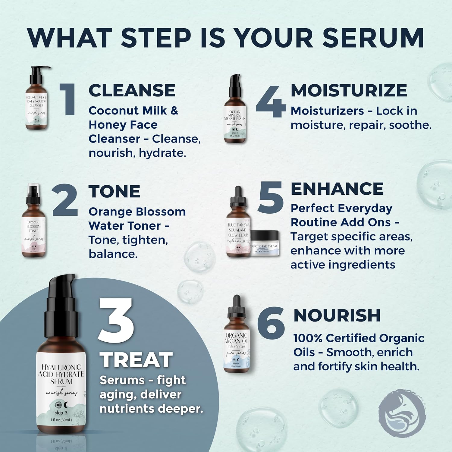 - ANTI AGING HYALURONIC ACID FACE SERUM - It is carefully crafted to give your skin a youthful glow. It helps firm, tighten, moisturize and hydrate your face while leaving it feeling soft, smooth, and rejuvenated.