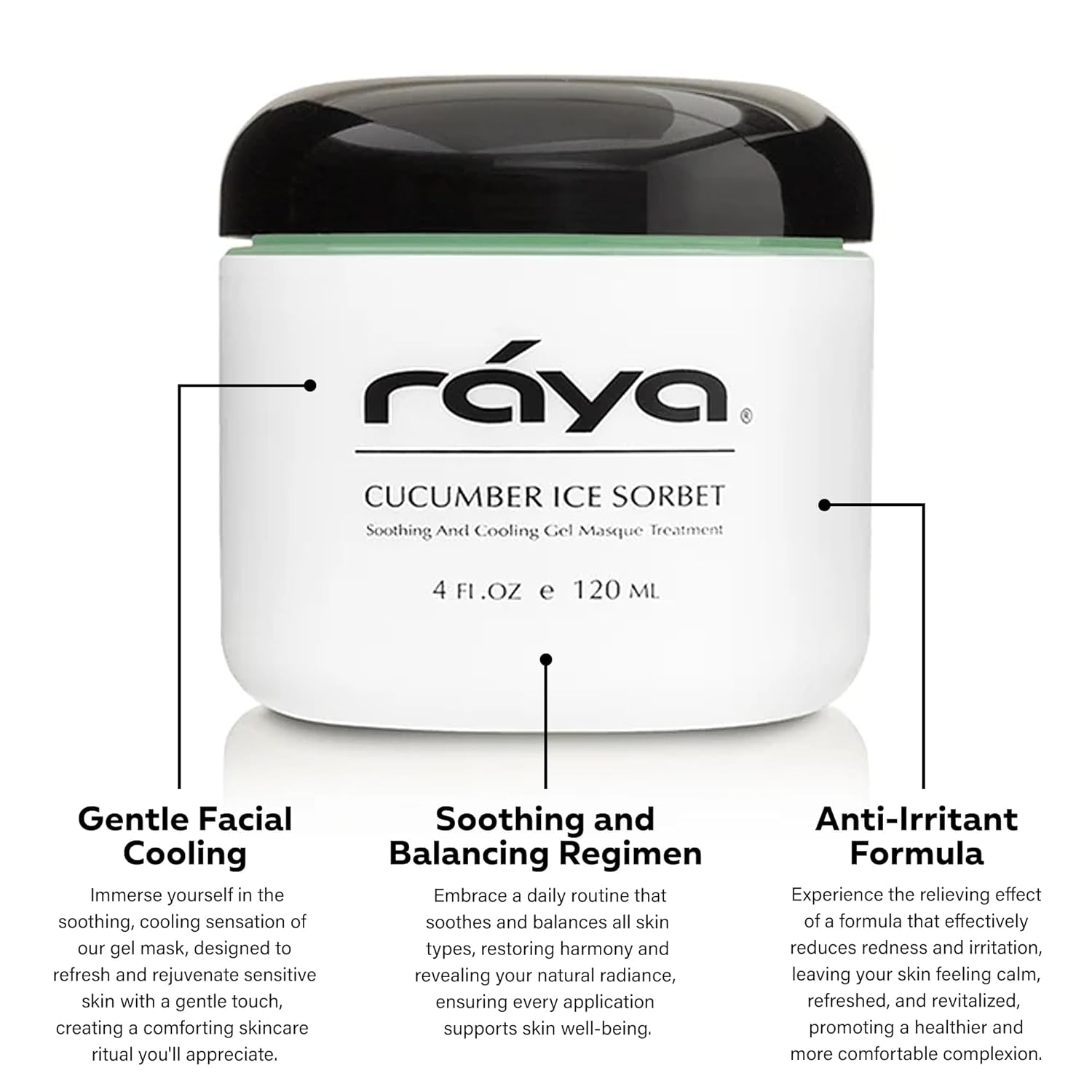 - Refreshing & Unique Gel Mask: Experience a facial gel mask unlike any other! Raya’s Cucumber Ice Sorbet Masque is designed for an instant cooling sensation that hydrates, soothes, and refreshes your skin. Ideal for calming all skin types, this mask is your go-to remedy for a post-sun cool-down or whenever your skin needs a pick-me-up.