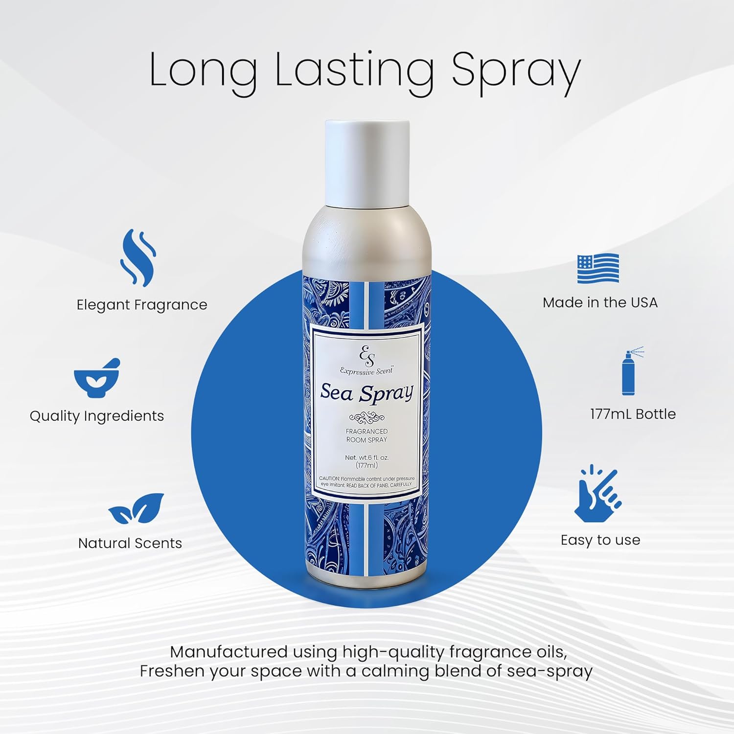 - MADE IN USA WITH PREMIUM, NATURAL INGREDIENTS: Proudly made in the USA, expressive scent Air Freshener Sprays are crafted with high quality, locally sourced ingredients. This non-toxic, natural aroma spray offers a Luxurious Sea Spray Home Scent, Perfect for those seeking a safe and inviting atmosphere. Our natural air freshener and room sprays deliver a clean and relaxing fragrance for any space.