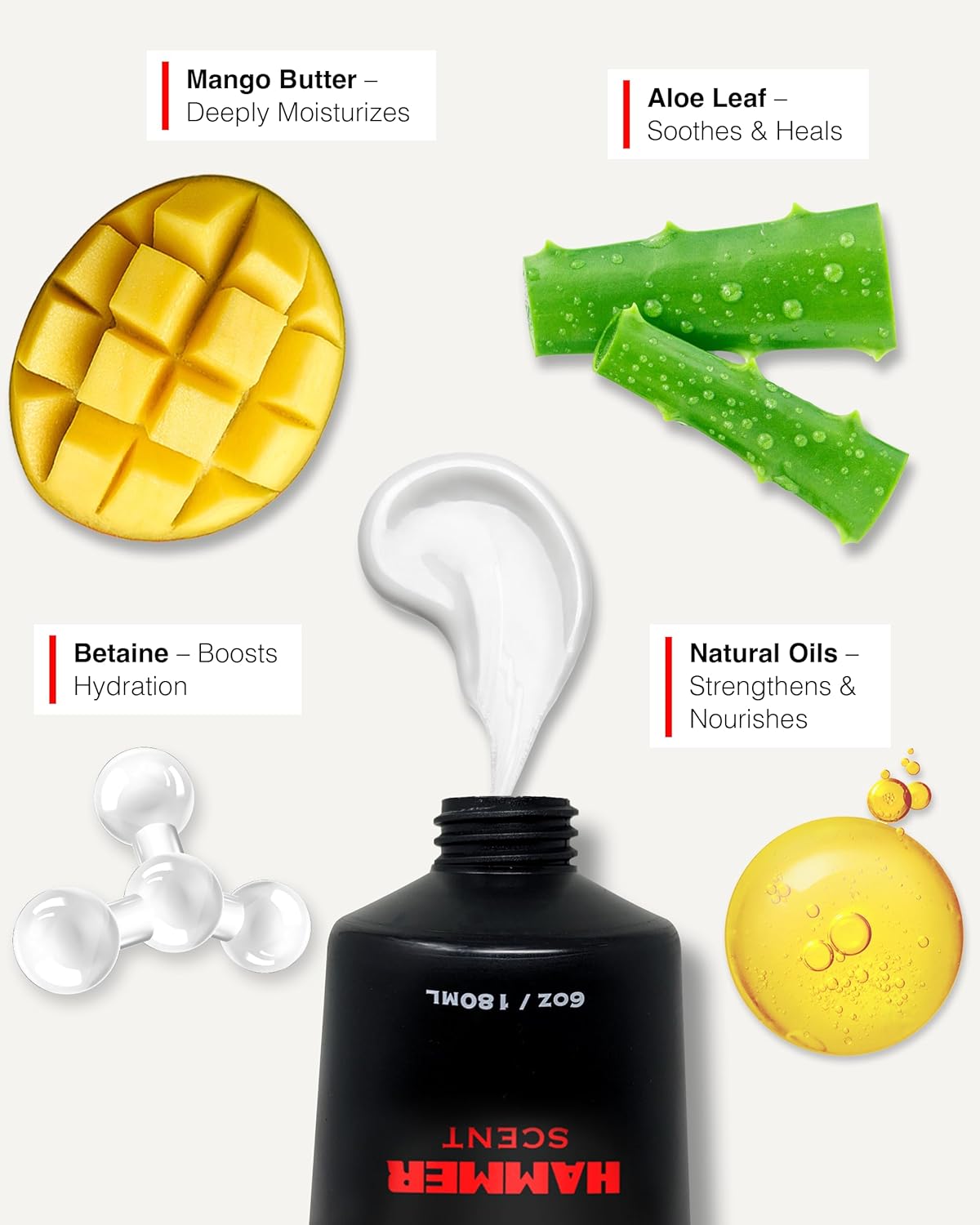 - Powerful, Natural Active Ingredients: Say goodbye to the dreaded beard itch and embarrassing beardruff, and hello to the smoothest, silkiest beard you've ever had. Natural moisturizers and oils including Mango Butter, Avocado Oil, Aloe Leaf, Jojoba Esters, and Argan Oil hydrate deep within your pores, giving your skin and beard the essential care every bearded man deserves