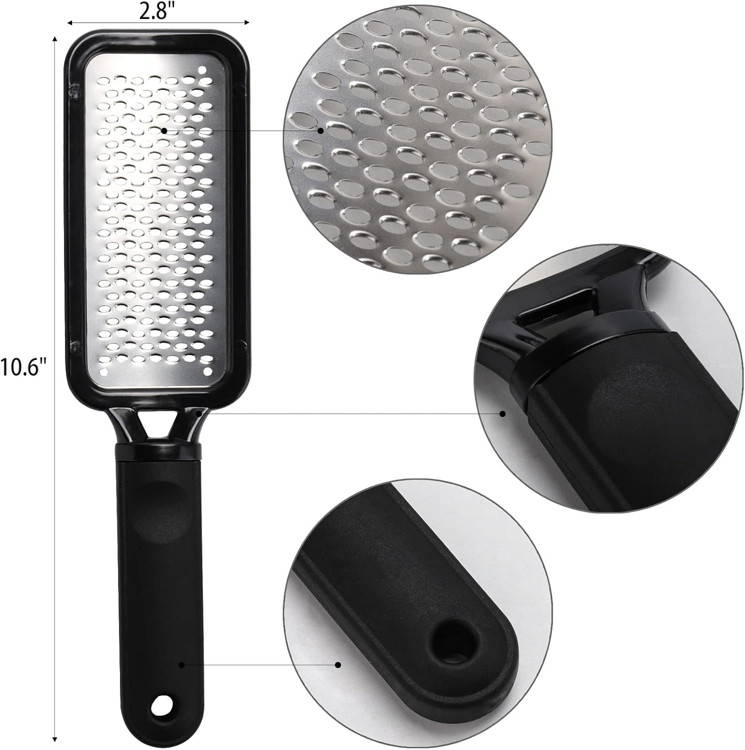 - Go start with the largest heavy duty foot grater after soaking feet then filing with the rough side then finish up with the medium side by using the double sided foot file callus remover