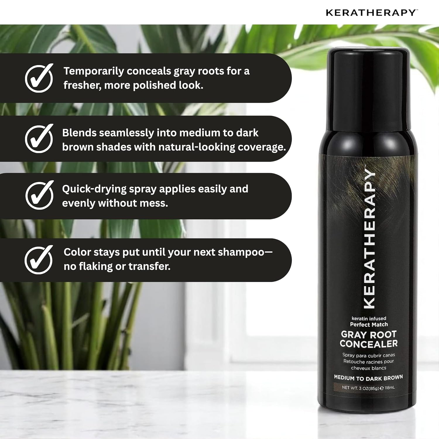 Keratherapy Keratin Infused Perfect Match Gray Root Concealer Spray, Dark Brown, 3 oz, 118 ml - Root Cover Up Spray to Hide Gray Roots - Keratin Therapy Hair Darkening & Temporary Scalp Concealer