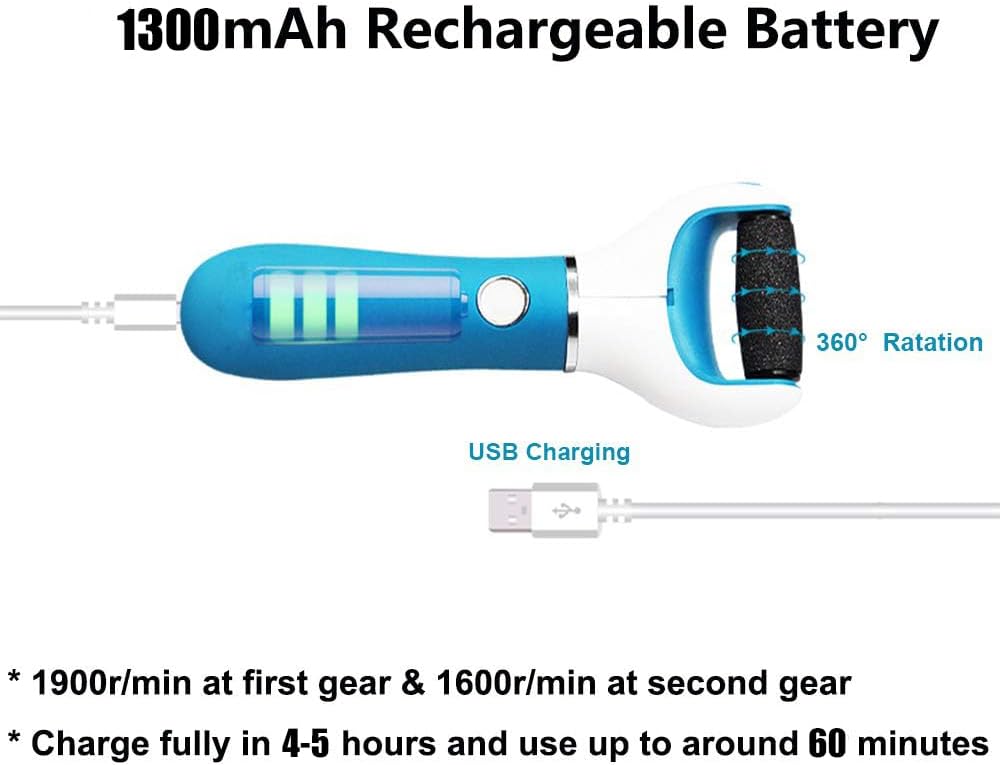 - Easy to clean: 2 rollers for soft and hard callus, also easy to replace and clean the roller of foot file. But please don't immense this foot care device into the water or shower it