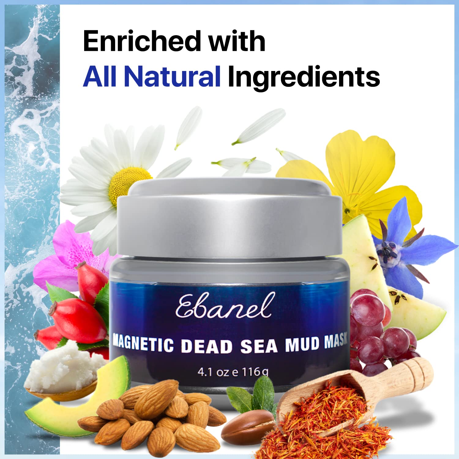 Ebanel Magnetic Dead Sea Mud Mask for Face and Body, 4.1 Oz Deep Pore Cleansing Moisturizing Bentonite Clay Face Mask for Blackheads with Retinol, Rosehip, Avocado Oil, Argan Oil, Peptide