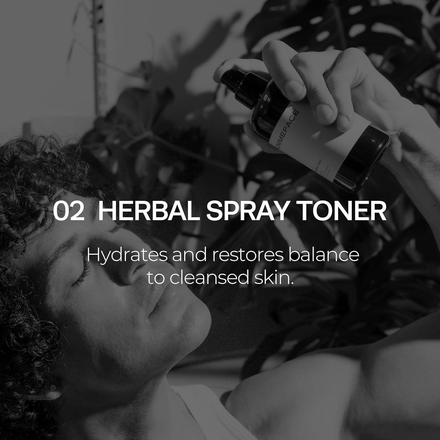 HommeFace Men’s Daily Trio 3-Step Daily Routine Set with Face Wash, Herbal Spray Toner & Moisturizer - Korean Skincare Technology with CICA, Tea Tree Leaf & Witch Hazel Extracts, for All Skin Types