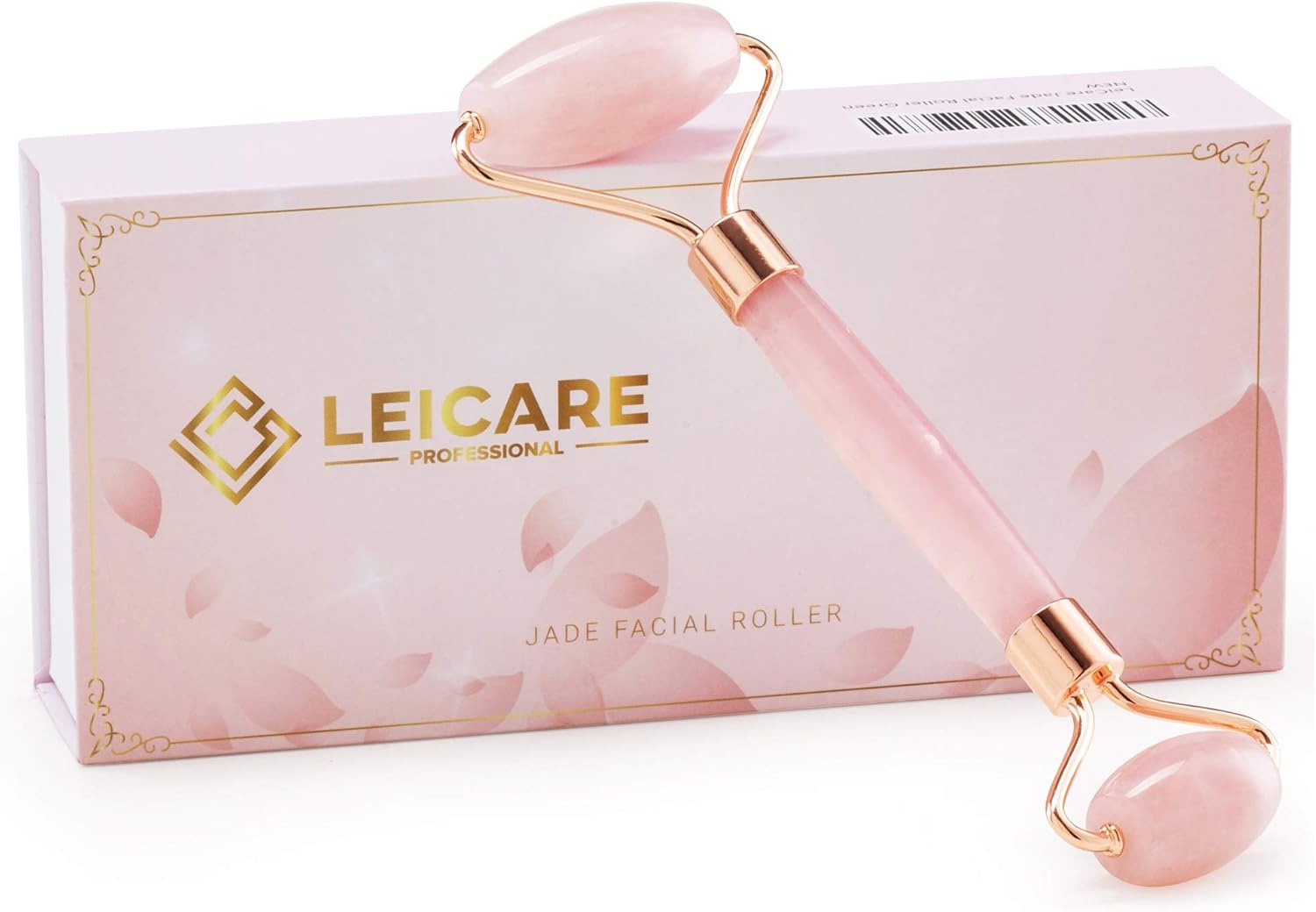 Jade Roller for Face - Rose Quartz Face Roller Skin Care - Stone Facial Roller, Face Massager for Women, Relieve Stress, Remove Wrinkles Eye Puffiness