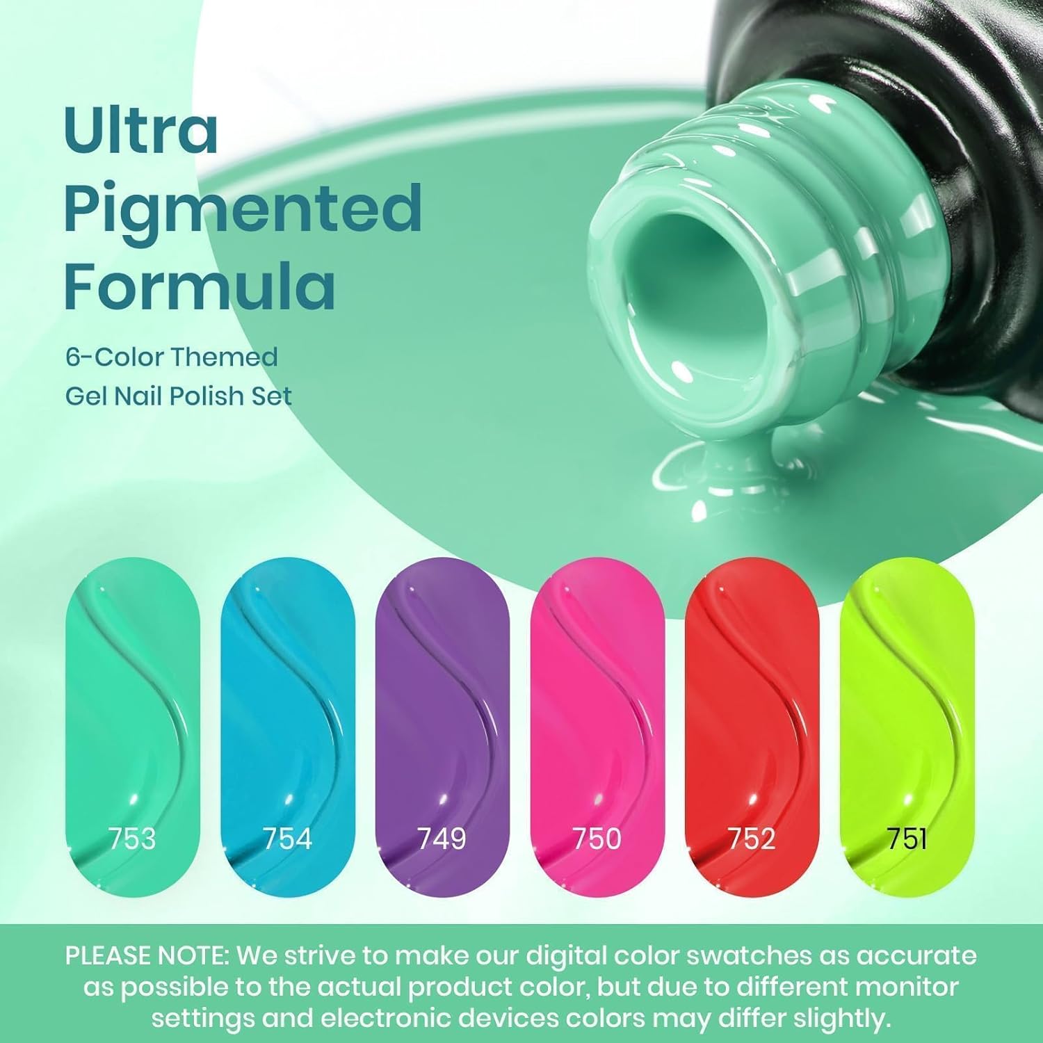 - Gel Polish Kit: 2025 nail trend color, beetles 6 bright nails elegant shades of popular and trendy colors suitable for all seasons and daily routine life! Neon bright colors are forever young and timeless! Color Number: e282-e283-e284-e285 -e286 -e310