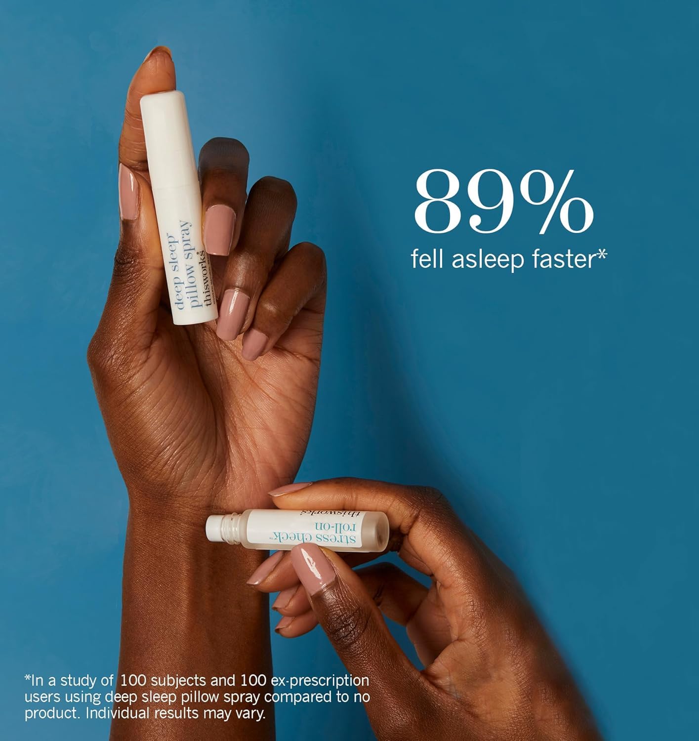 thisworks Choose Sleep Travel Kit, The Deep Sleep Pillow Mini Spray and Aromatherapeutic Roller Ball Infused with Eucalyptus, Frankincense & Lavender Essential Oils, 2x5ml