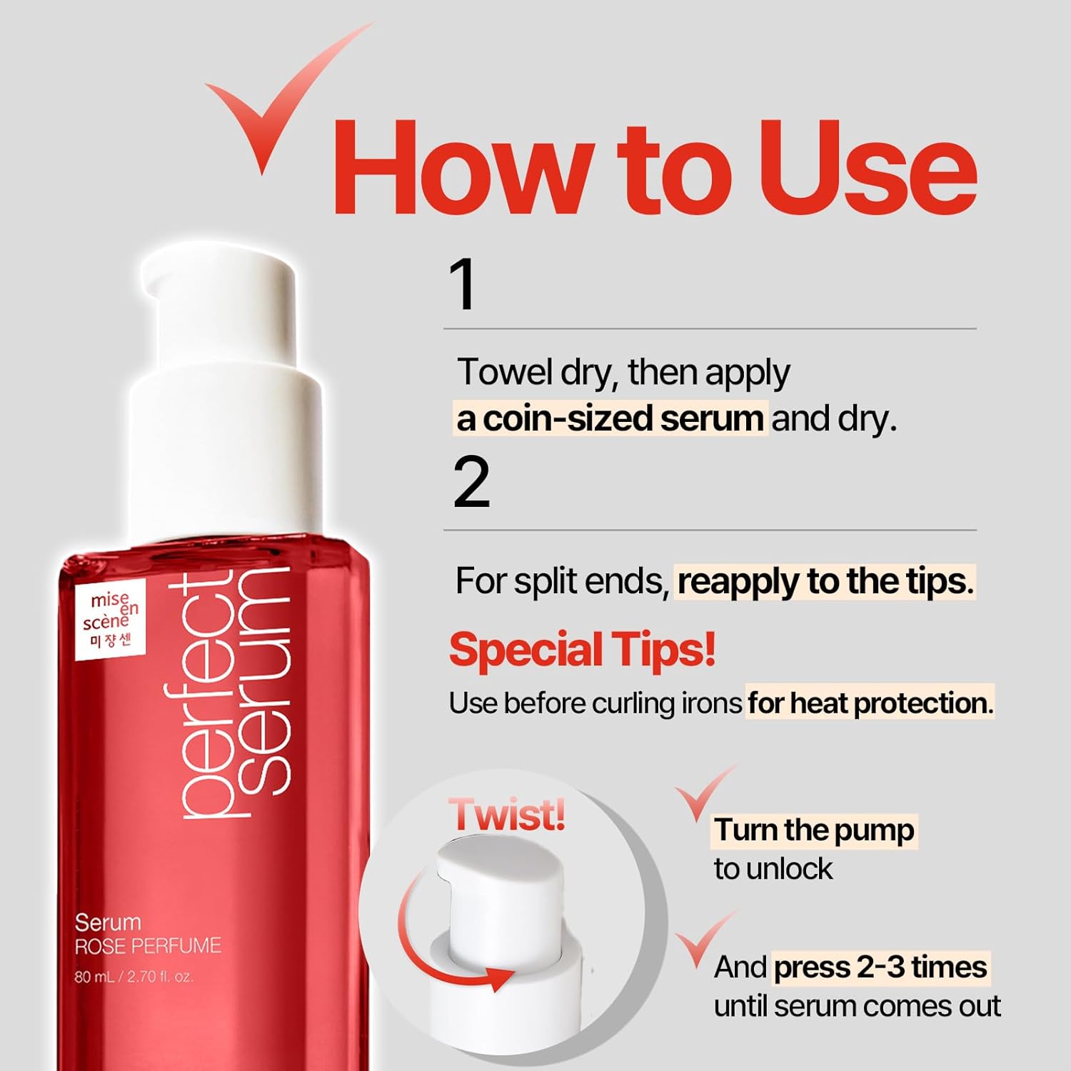 Mise En Scene Perfect Rose Perfume Serum - Korean Hair Essence with Rose Scent, Argan Oil for Damaged Hair Care, 2.70 fl. Oz