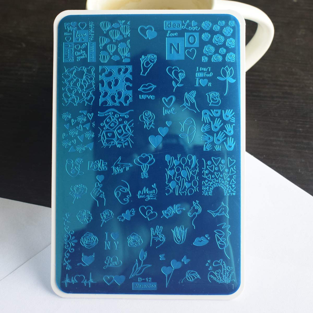 - PACKAGE CONTENTS: 2pcs Large Nail Art Stamp Template Valentine's Day Image Plates With Fire/skeleton/skull/flame/ Love/balloon/leaf/lip/rose/footprint/palm Design. Many Unique Valentine's Day Patterns You Can Choose From