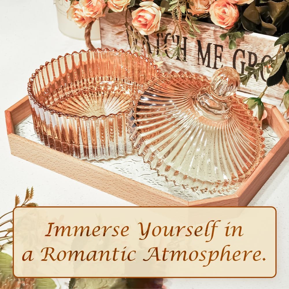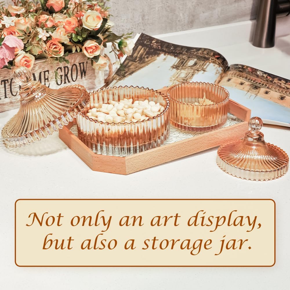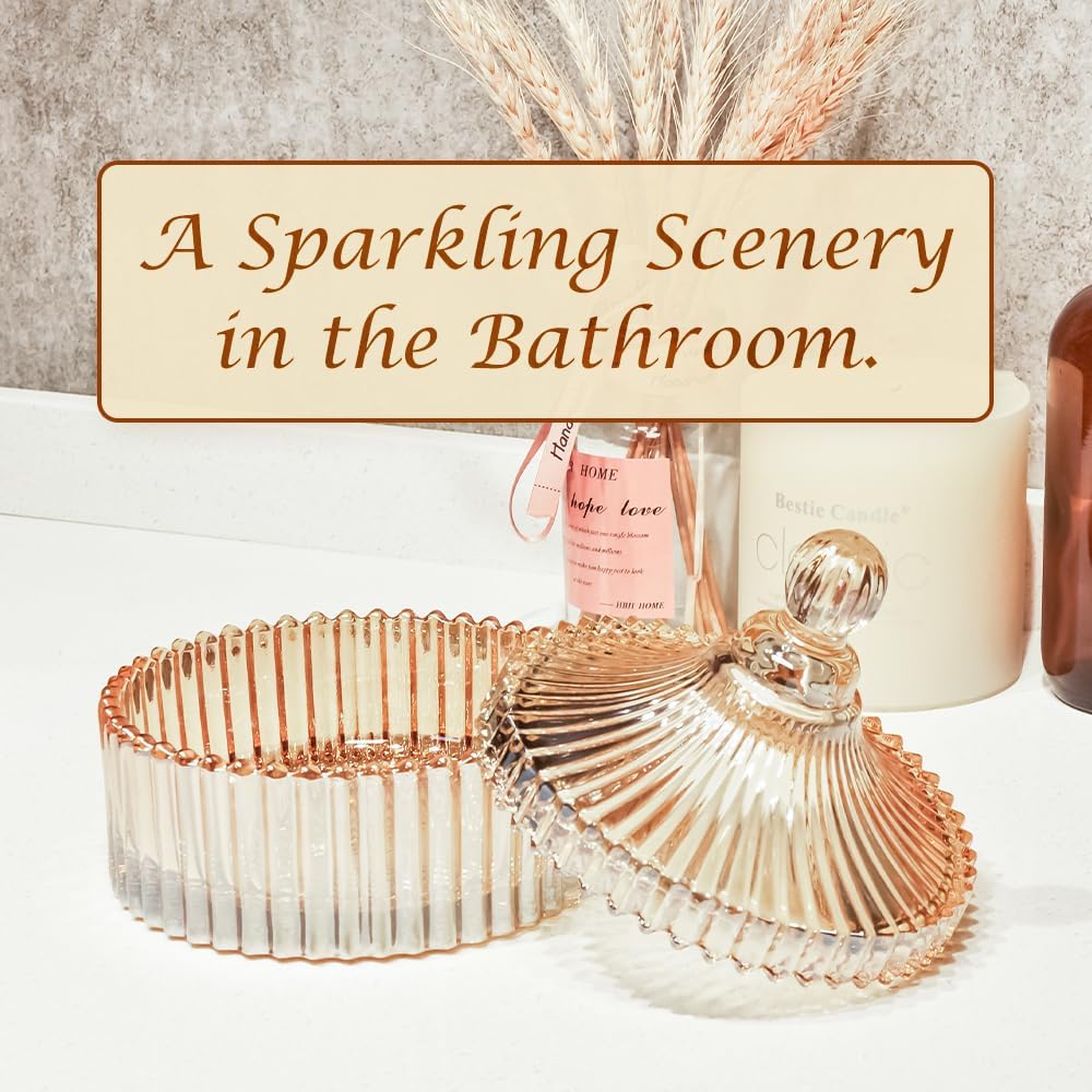 R FLORY 2 Pack Qtip Holder Apothecary Jars with Lids Glass Q Tip Holder for Bathroom Set Decorative Jars Crystal Bowl Jar Organizer for Cotton Swabs, Balls, Pads, Floss Picks (Amber,10+24oz)