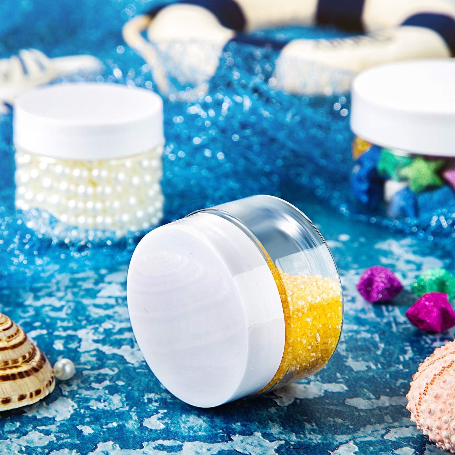 SATINIOR 24 Pieces Empty Clear Plastic Jars with Lids Round Storage Containers Wide-Mouth for Beauty Product Cosmetic Cream Lotion Liquid Butter Craft and Food (White Lid, 1 oz)