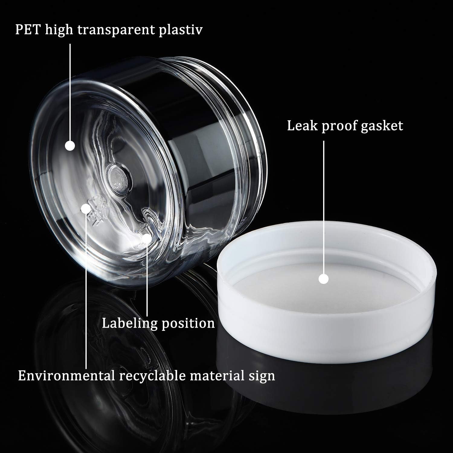 - Product size: each wide-mouth plastic containers jars measure 5.2 cm/ 2.05 inches in diameter, 3.3 cm/ 1.3 inches in height wide, the volume is 1 oz; These are empty jars, great for meal preparation, condiments, DIY crafts, creams, butters, lotions and others