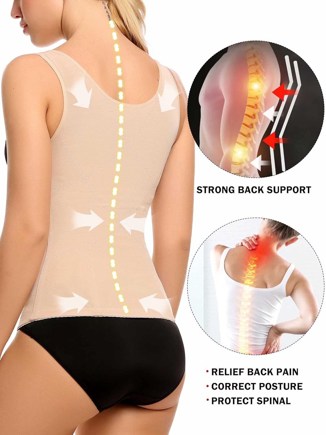 - 【SUITABLE FOR ANY WEIGHT LOSS PROGRAM】Our women shapewear vest can flatten abdomen,reduce waistline,support back,postpartum recovery,improve posture,relief waist pain,protect spine,expedite fat burn while exercise,combined with a healthy lean diet and drink plenty of water for weight loss.