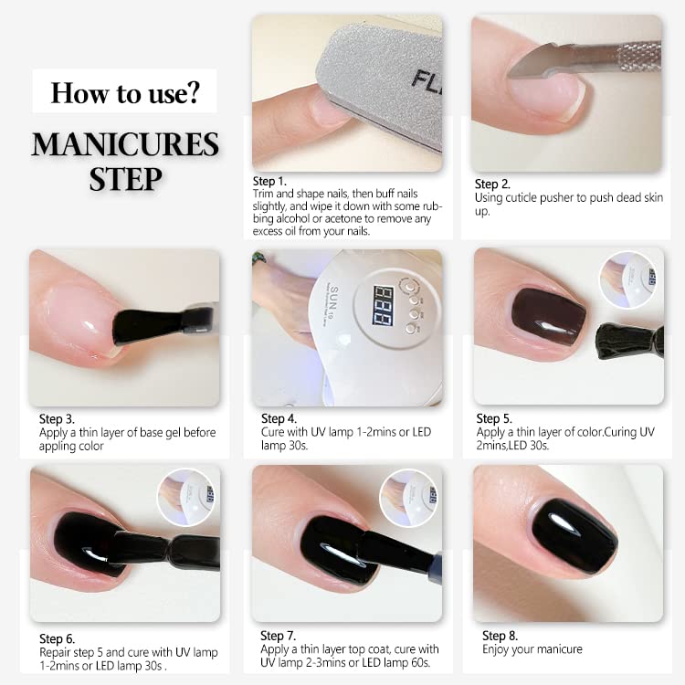 - Reminder:Cure under UV/LED nail dryer lamp,CURE TIME: Average for LED light 30-60 secs,UV light 2-4mins.