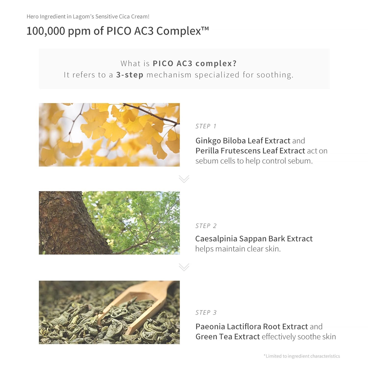 - Prevent skin concerns with 3-step mechanism: Lagom's specialized ingredient Pico AC3 Complex4 reduces excess sebum, clears clogged pores, controls acne-causing bacteria, and helps soothe skin concerns.