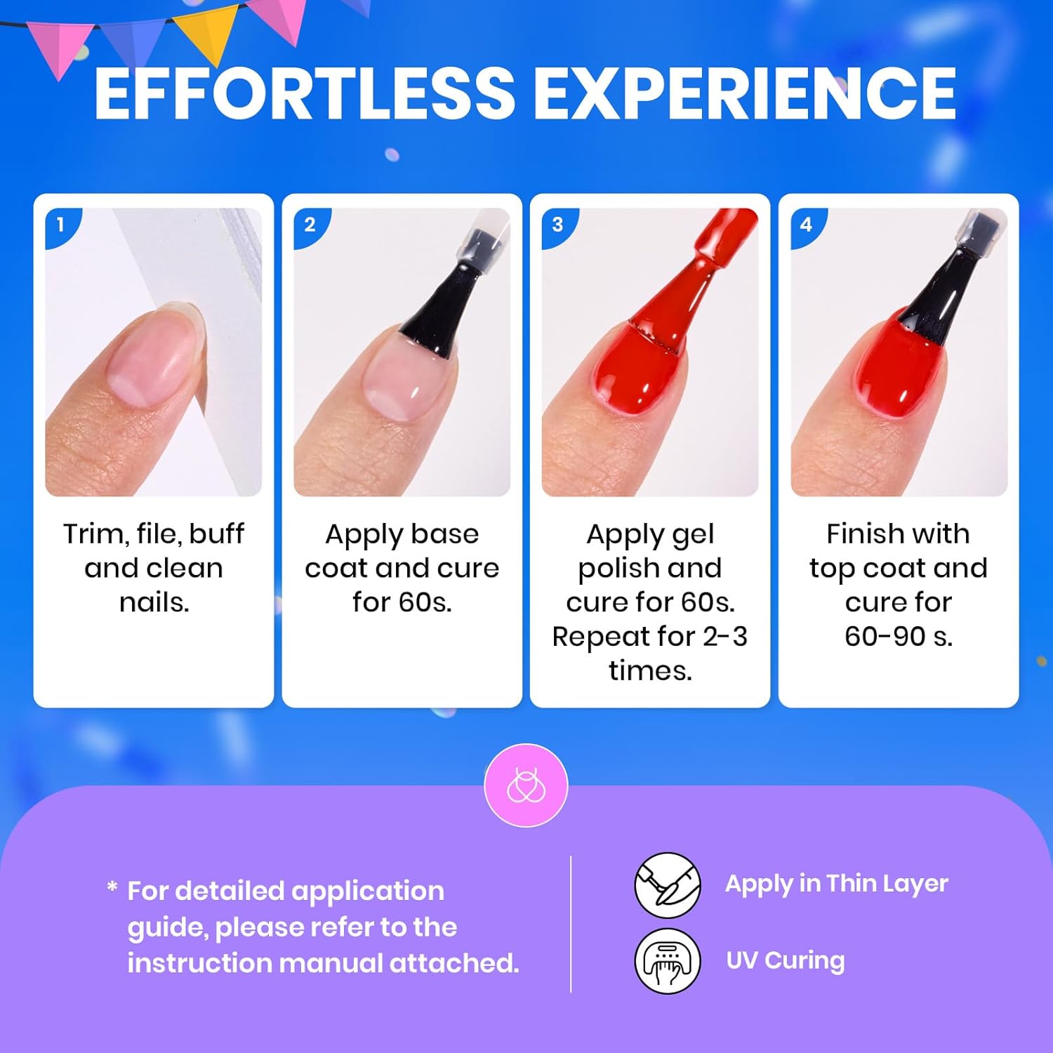 - Included Components : Double-ended Brush, Nail Buffer, Removal Wand