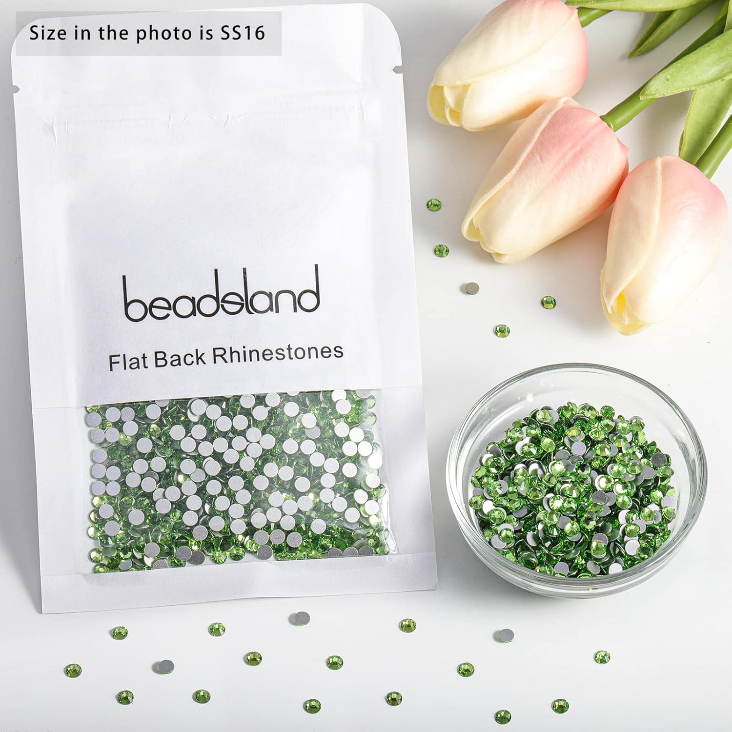 - Pack of 1440 Pieces Light Green Rhinestones SS16,Size 3.8-4.0mm.
