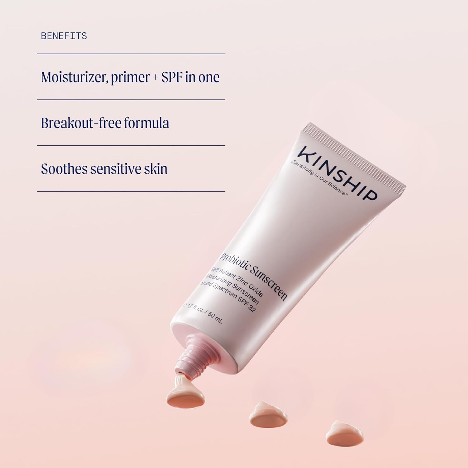- NOURISH + PROTECT - Beyond sun protection, Kinship Self Reflect SPF 32 is infused with turmeric and Kinbiome, our patented plant-based pre-probiotic technology. These powerhouse ingredients work together to soothe and nourish your skin, strengthen the skin barrier, and support a clear, glowing complexion, making this sunscreen a vital part of your skincare routine every day of the year.