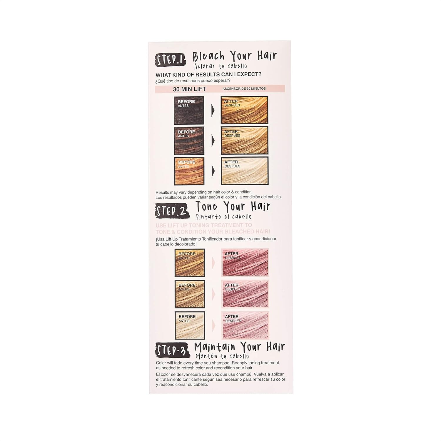 - LIFT UP HAIR BLEACH KIT - Lift Up Complete Bleach & Tone Kit includes everything you need to bleach your hair at home. Bleach your hair blonde, then use the Rose toner to tone down brassiness and add a temporary pink tint to your hair