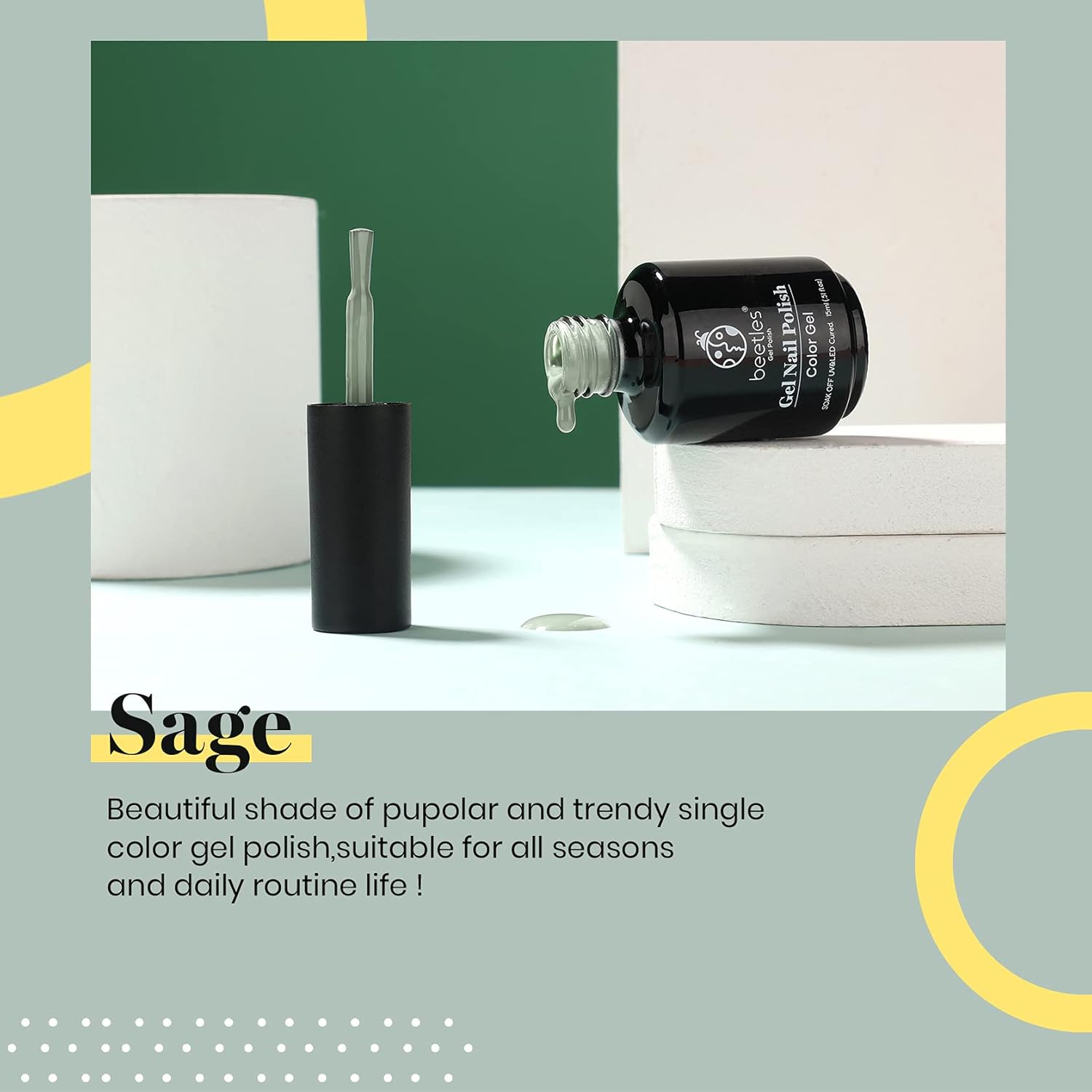 - SAGE GREEN GEL NAIL POLISH: 1pcs*15ml gel nail polish with with perfect shine. ďźPLEASE NOTE: We strive to make our digital color swatches as accurate as possible to the actual product color but due to different monitor settings and electronic devices colors may differ slightly.ďź Color Number: a802
