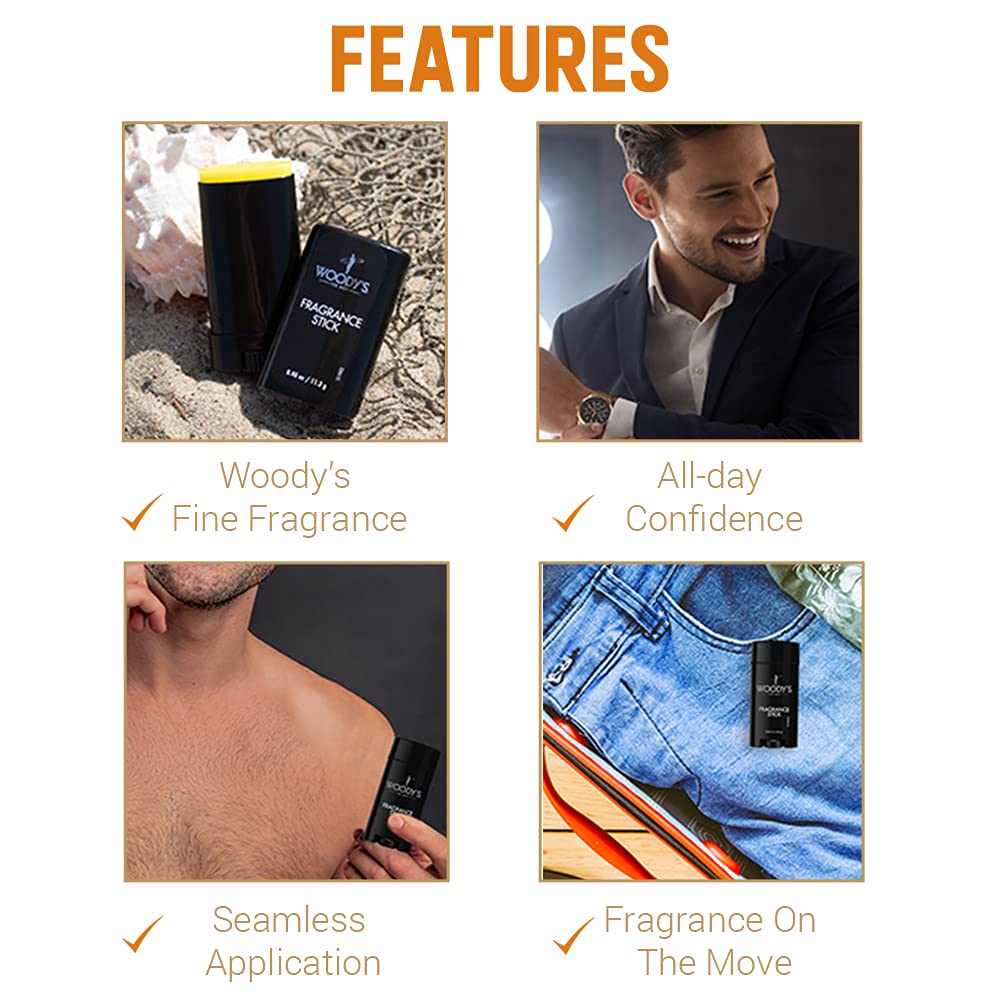 - Solid Cologne Stick for Men: Woody’s Fine Fragrance in solid form. This rich, masculine scent in solid state is excellent for today’s modern man on the go. Great for the office or after-party. Feeling great and smelling better is just a few dabs away.