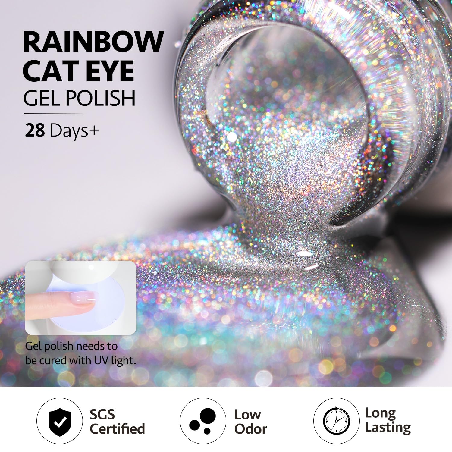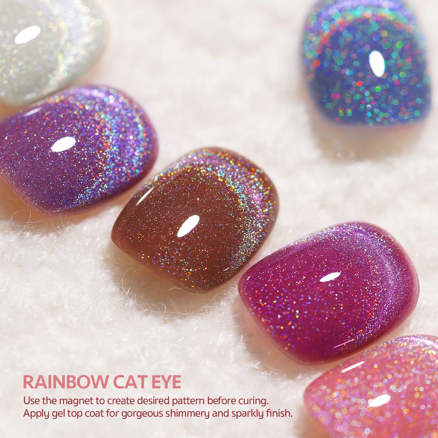 GAOY Rainbow Glitter Cat Eye Gel Nail Polish Set, 6 Holographic Sparkle Colors for Nail Art DIY Manicure and Pedicure at Home