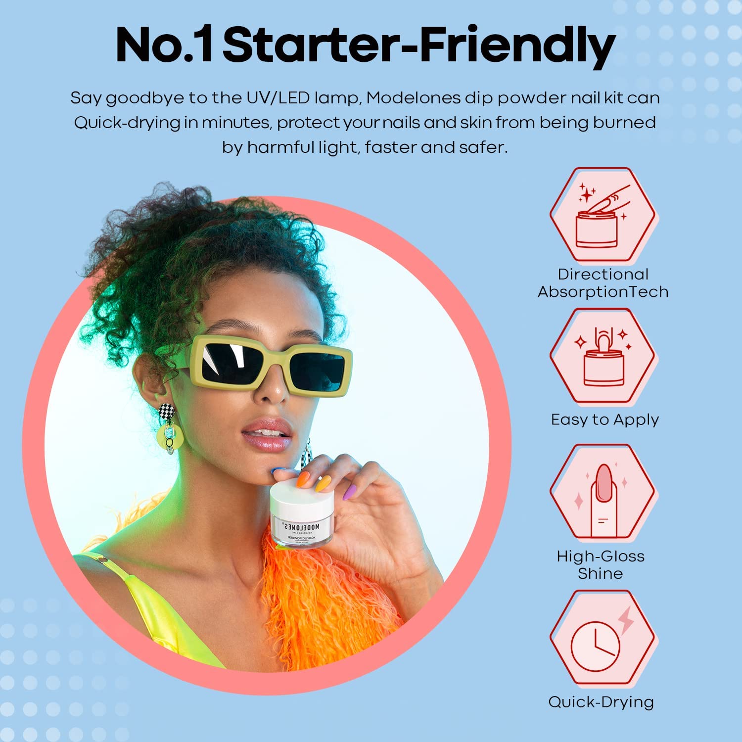 - š¤SAFETY & TIME SAVING: MODELONES Clear Dip Powder doesnāt need nail lamp to cure, which can avoid making your skin black. It's a faster way to paint your nails.