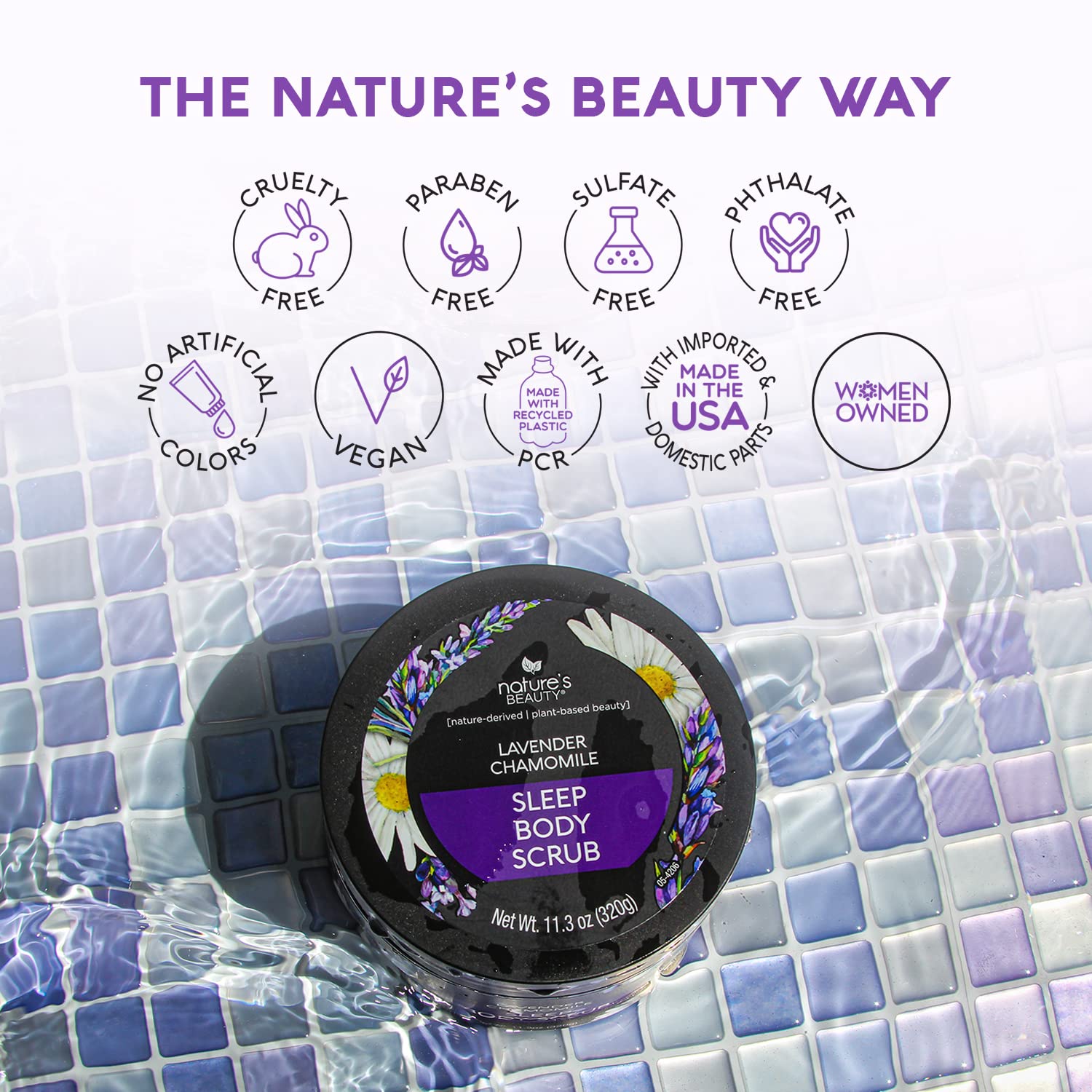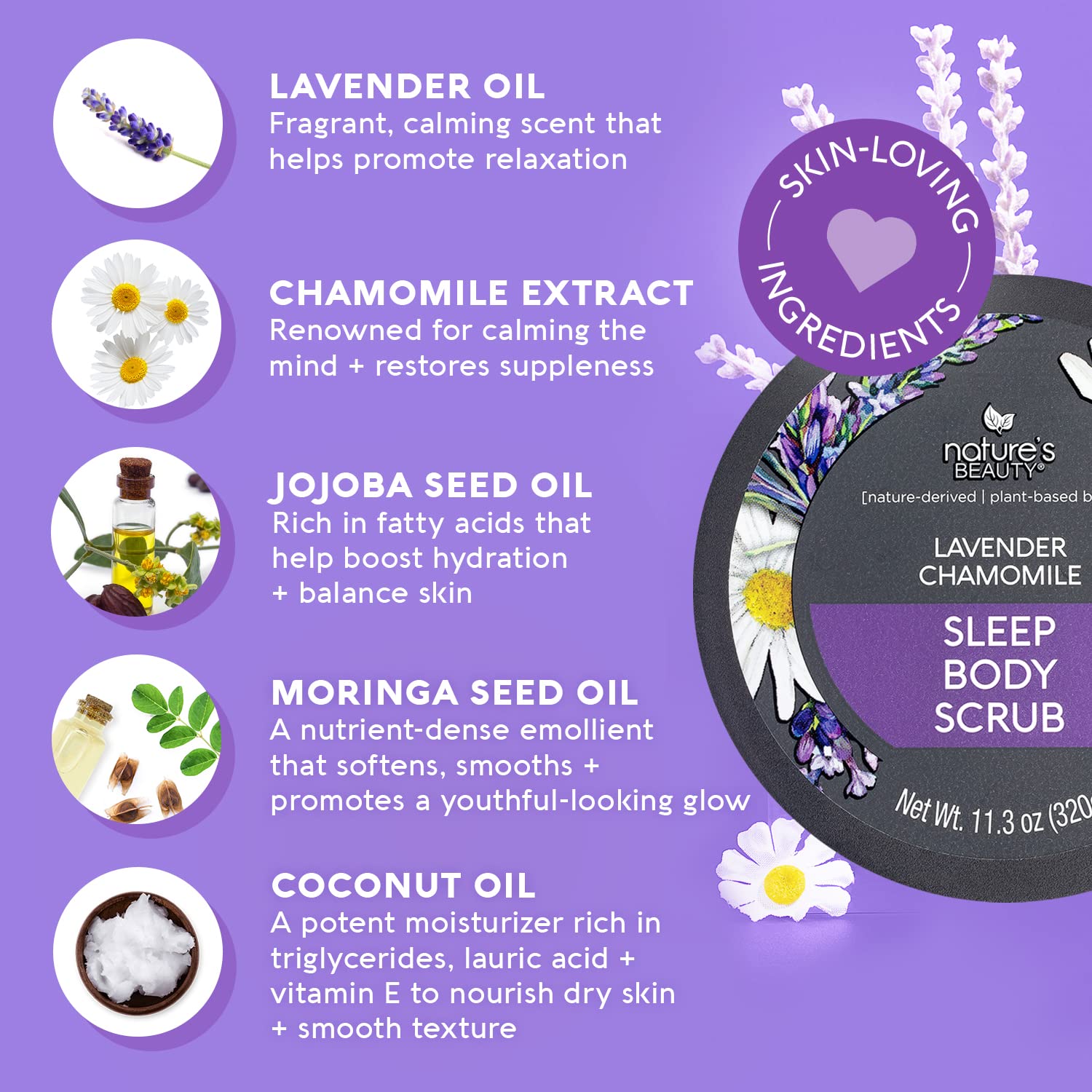 Nature's Beauty Lavender Chamomile Sleep Body Scrub Multi-Pack - Gently Exfoliate, Moisturize & Sooth Combination to Dry Skin, Made w/Coconut, Jojoba + Moringa Seed Oils, 11.3 oz (2 Pack)