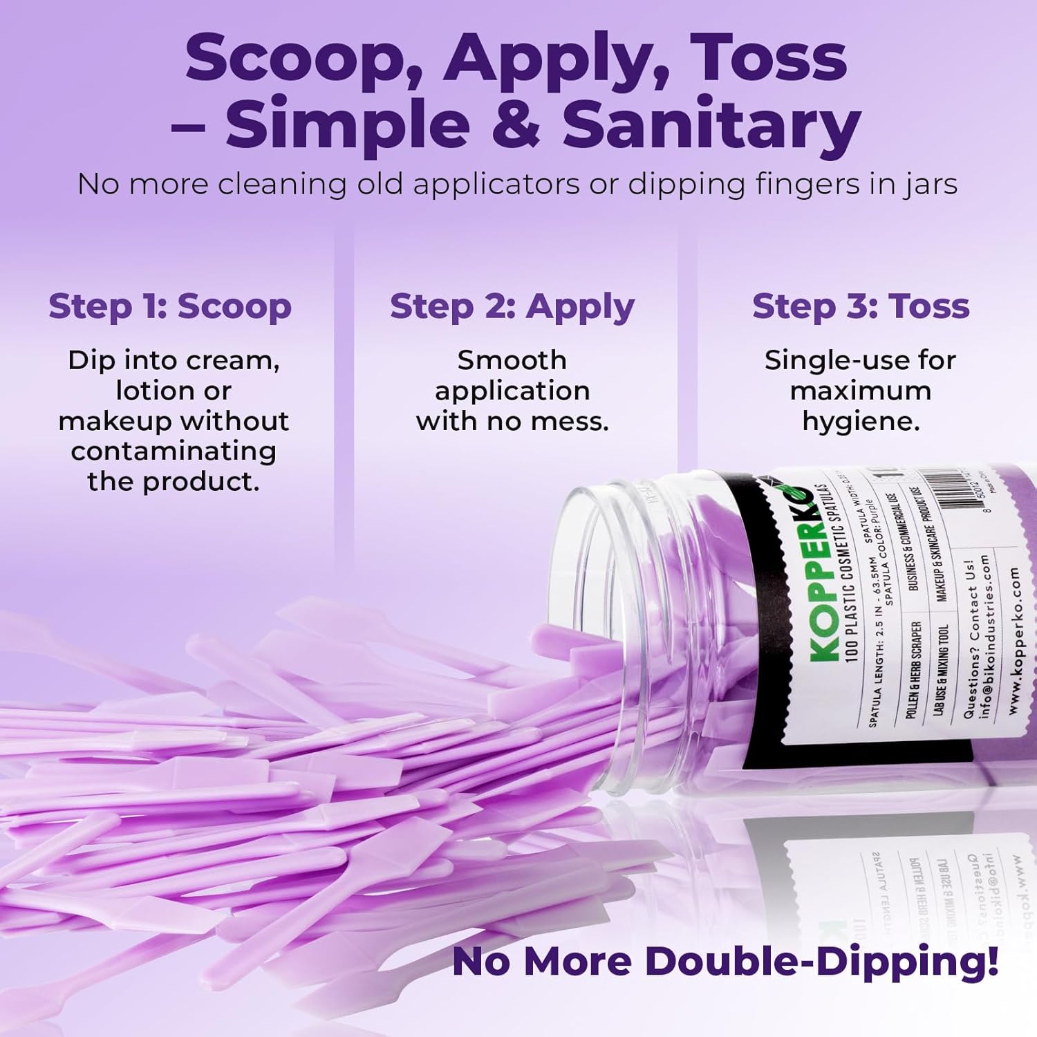 - Clean Out Your Containers: Maximize product use with our 500 pack of 0.25"x2.5" disposable cosmetic plastic spatulas. Easily extract creams, lotions, or makeup from containers, even in tight spaces, without getting product under your nails