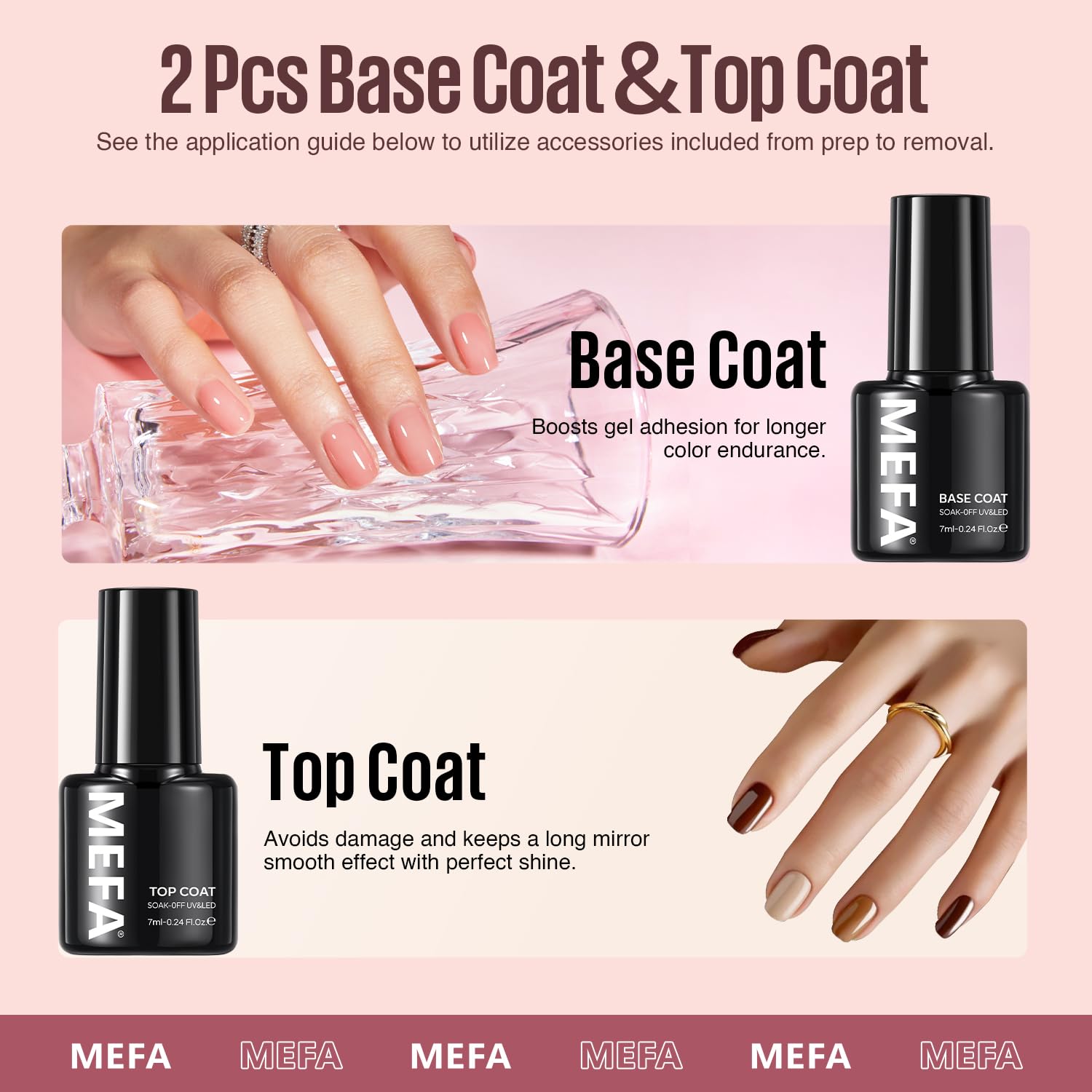 - Long-lasting Salon Quality: This trendy tones collection set can be used with all brands of top and base coat, but of course, with MEFA the effect is better; this set is long-lasting for two weeks with perfect shine under the proper application