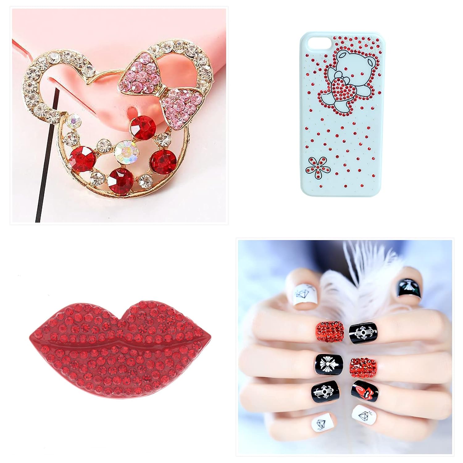 - 💎【Red Rhinestones for Nails】:The nail crystal kit includes 2500 round flat rhinestones of 8 kinds and 600 red special-shaped diamonds of 12 kinds in a transparent storage box, 1pcs nail rhinestones pen and 1pcs tweezers. Our 3D nail art rhinestones are available in different popular styles, which will add brilliance and charm to your craftsmanship and make your nails more dazzling and charming.