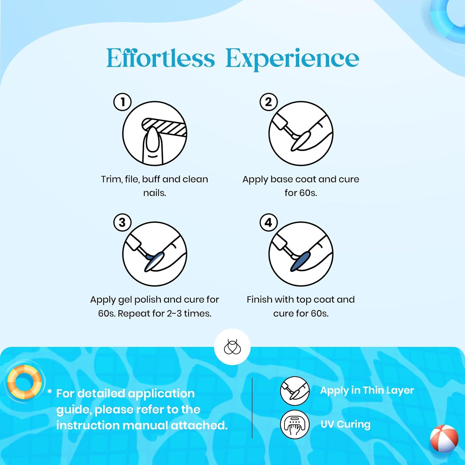 - ăNeed Nail Lamp Curing & Easy Applicationă:Beetles gel nail polish need to be cured under UV/LED lamp for 60-120 seconds,quick drying and skin friendly,suitable for various nails. Easy to apply, suitable for beginners and professional nail salons.