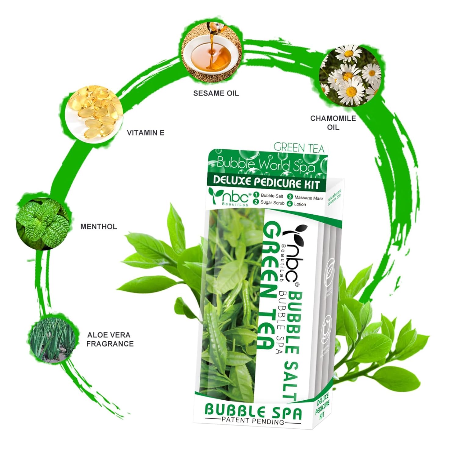 Pedicure Kit Foot Soak Set: Bubble Salt, Sugar Scrub, Massage Mask, Massage Lotion in a Box, 4 Step Foot Spa Kit for Dry Feet,Tired Feet(3 Set Green tea)
