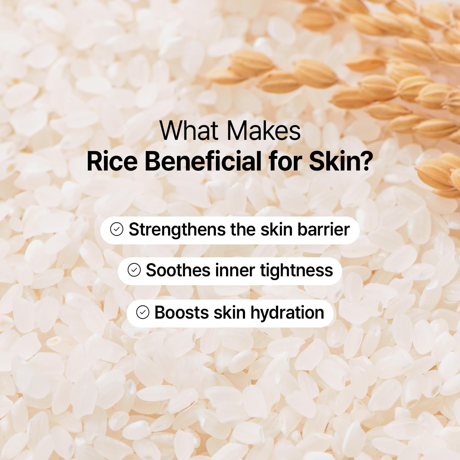 - Infused with 82% rice bran water, rich in vitamins B and E, perfect for soothing tight skin and creating a healthy glow.