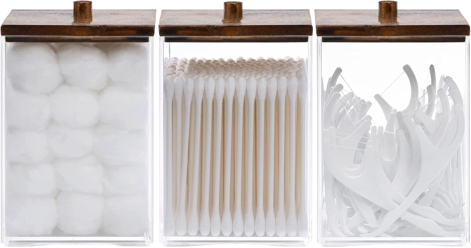 - Q tip Storage Organizer - Look like glass but are a really sturdy plastic and will not shatter, safe for kids