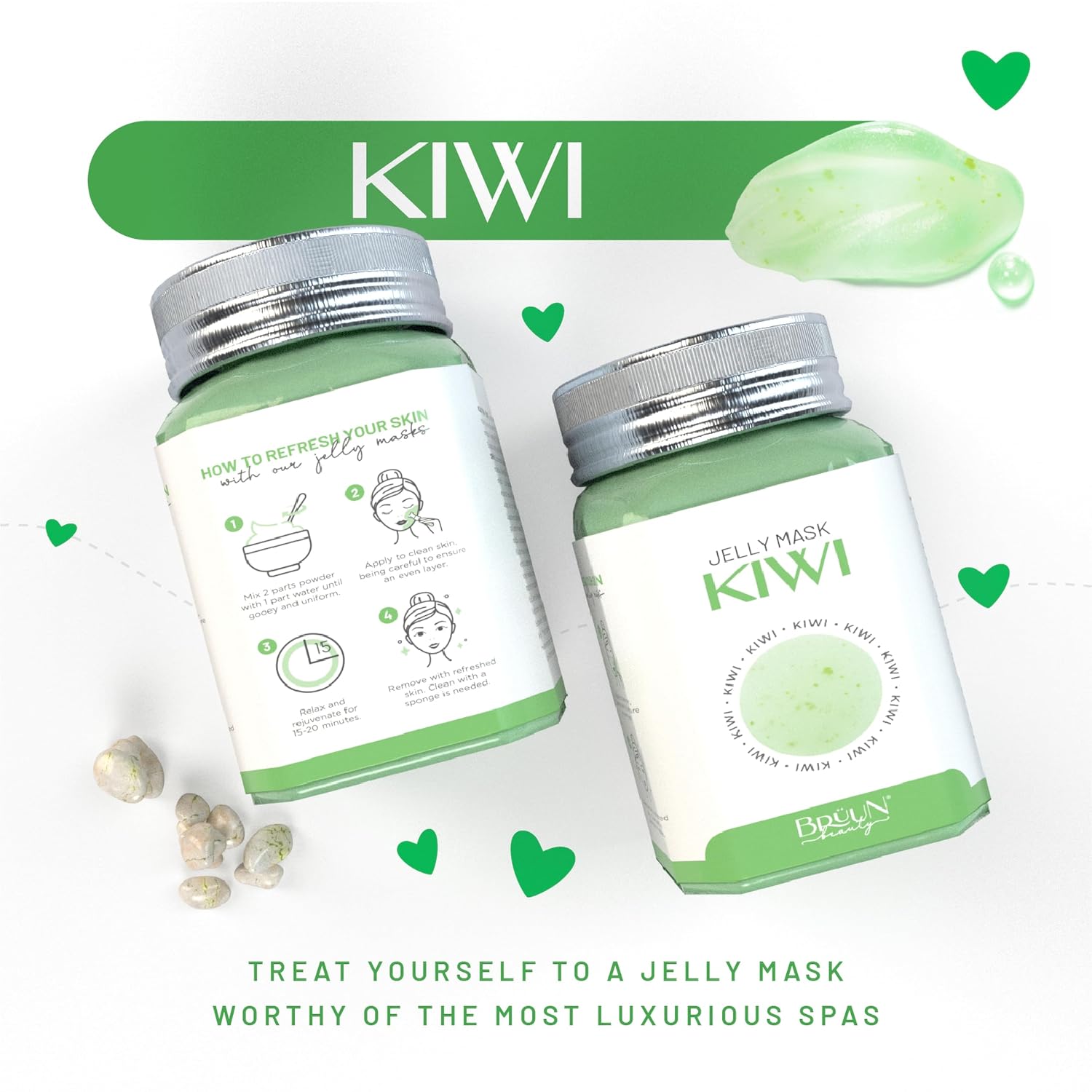 BRÜUN Peel-Off Kiwi Jelly Mask for Face Care – A 23 fl oz Rubber Mask Jar for 30 to 35 Treatments – A Skin Care Moisturizing Gel Mask of Spa Set for Men, Women and Adults