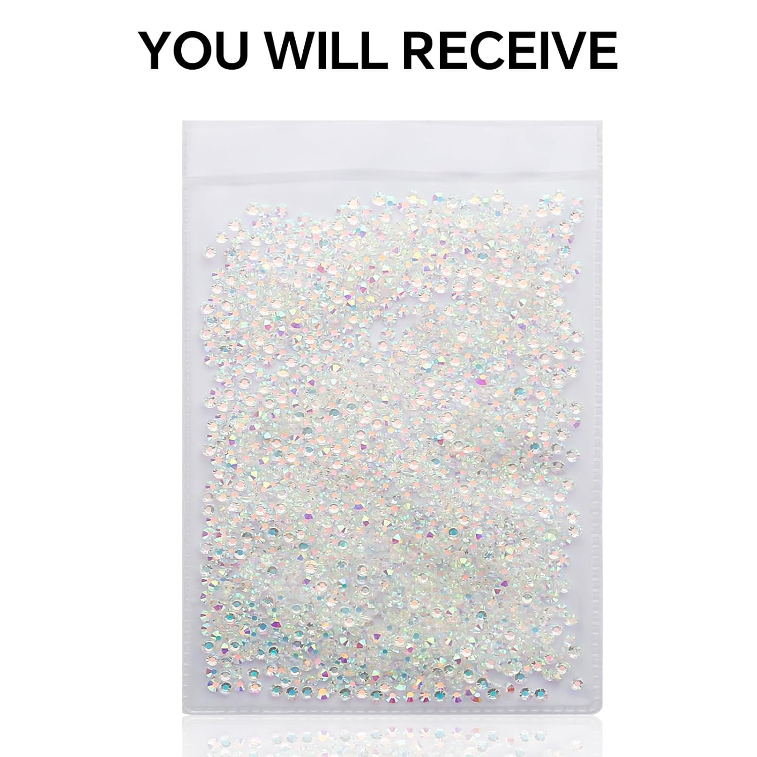 1440Pcs Transparent AB Crystal Rhinestones,Glass Flatback Rhinestones Gemstones Small for Nail Face Makeup Art Crafts Clothes Decoration -(SS6,2.0mm,Transparent AB)