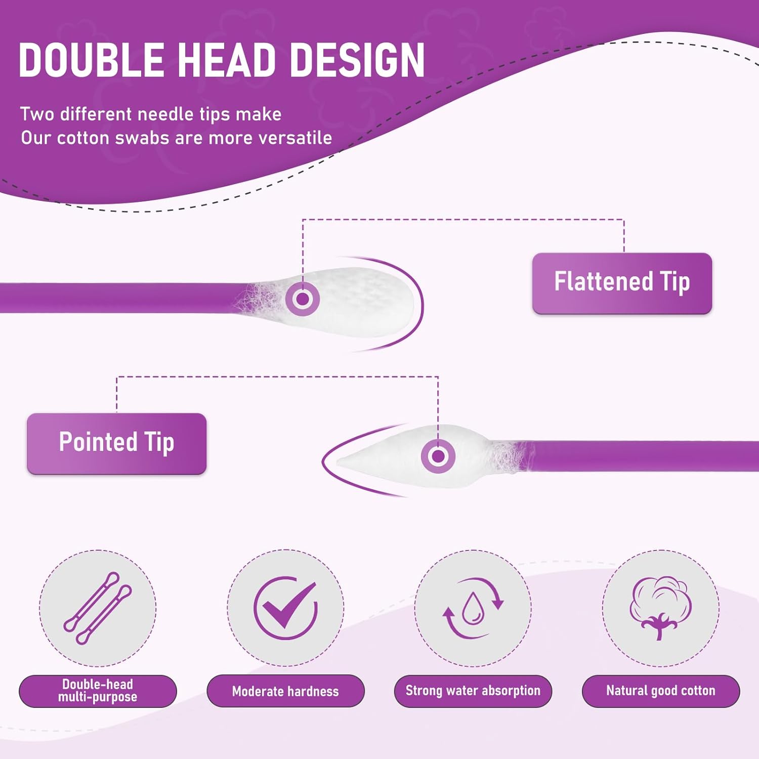 - CGR Dual Tipped Cotton Cosmetic Applicators feature flexible plastic sticks with one pointed tip and one flattened tip, both made of 100% cotton.