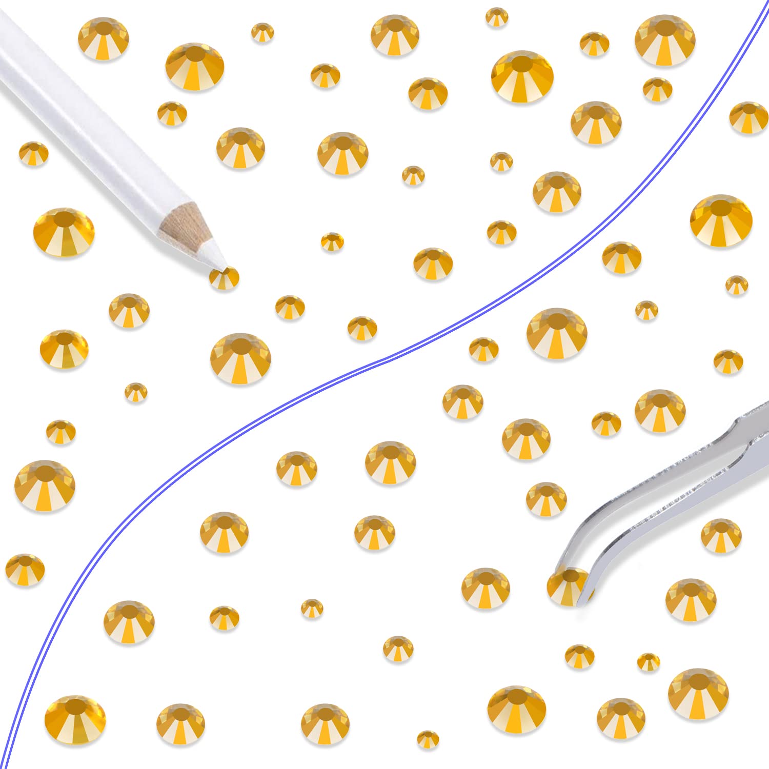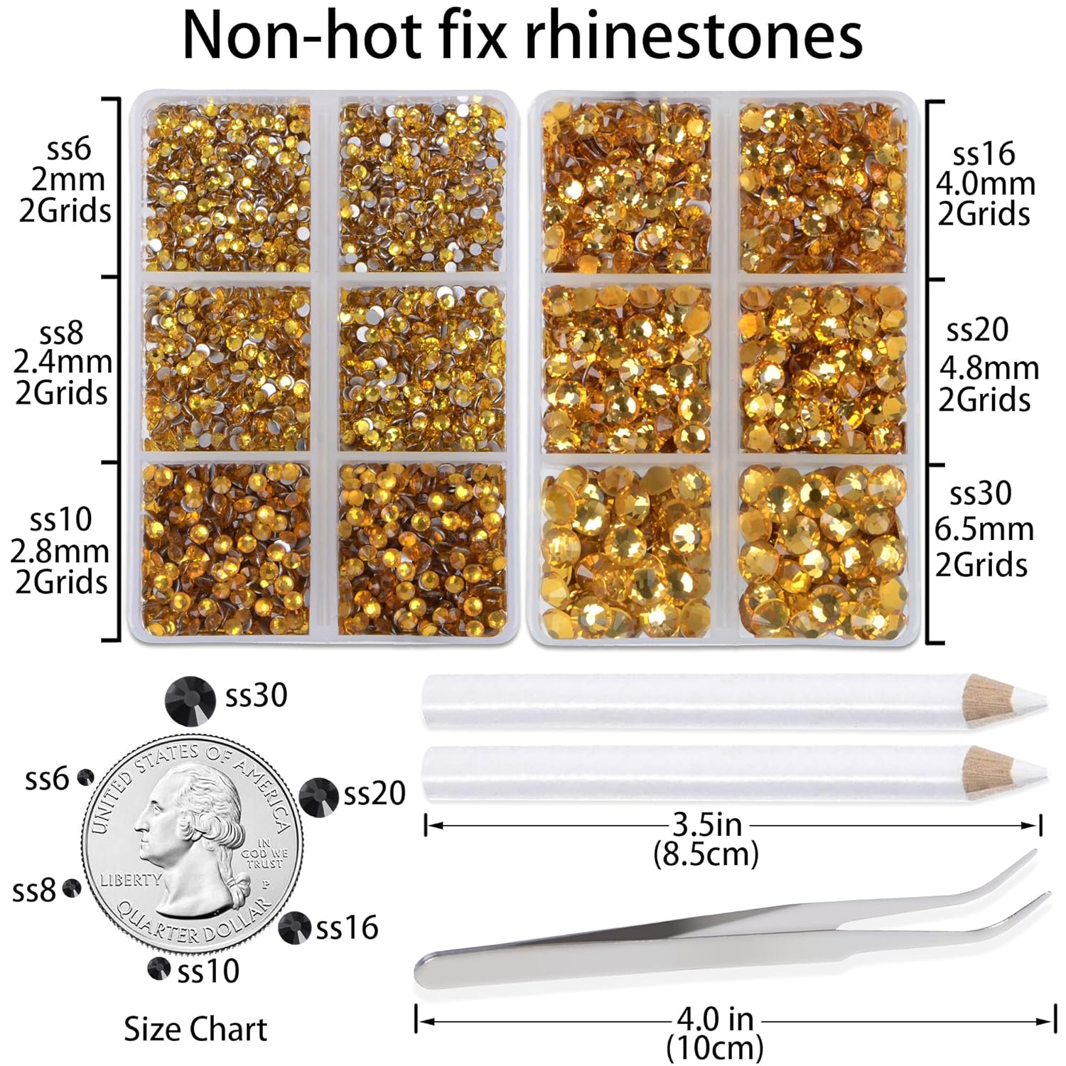 LPBeads 6000 Pieces Topaz Non Hotfix Rhinestones 6 Sizes Round Crystal Glass Flat Back Rhinestones with Tweezers and Picking Pen for Nail Art Crafts Clothes Bags DIY