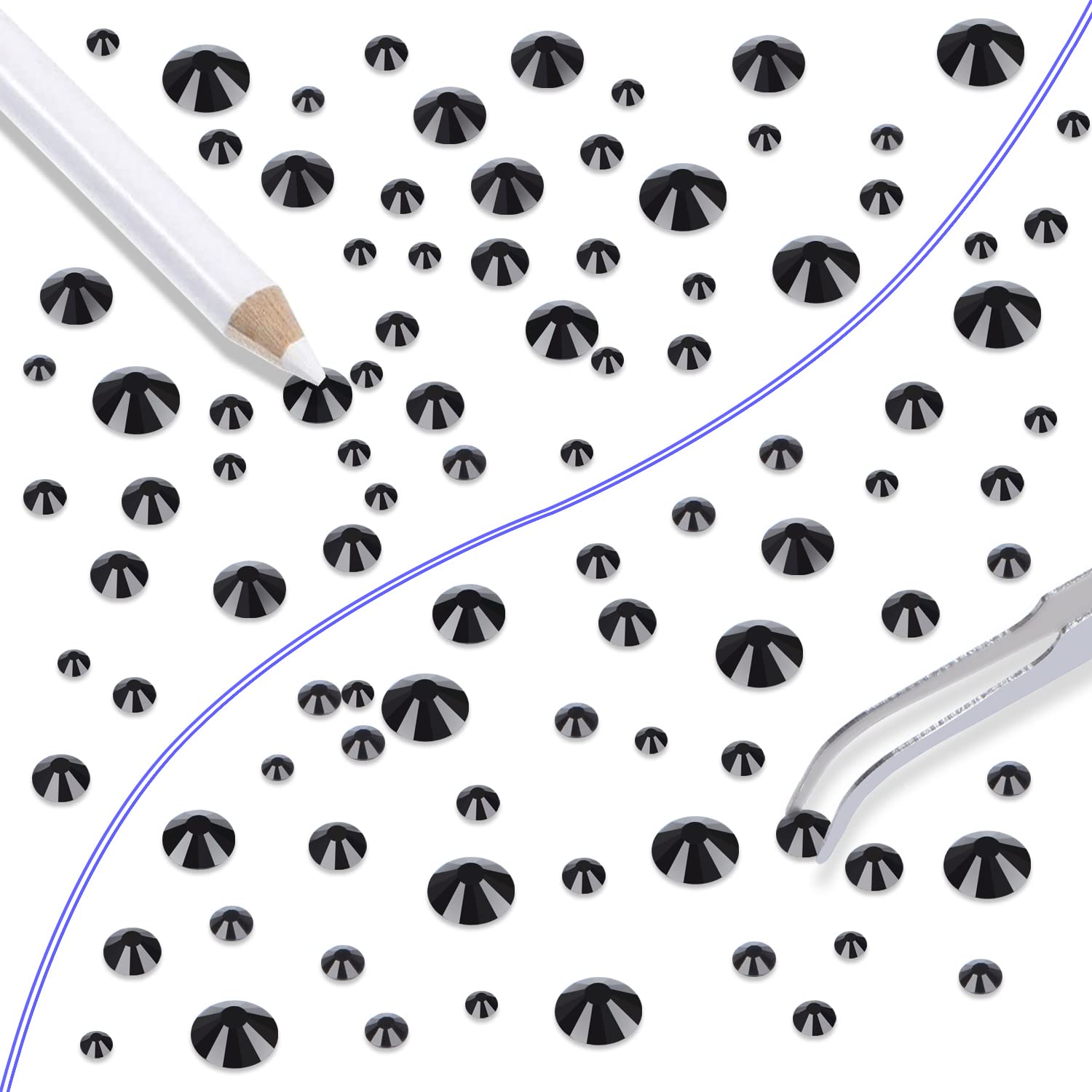 - Approx 6000 pcs of good quality sparkly flatback glass rhinestones with tweezers and 2 picker wax pencils help you easily pick up and set rhinestones in all your jewelry.