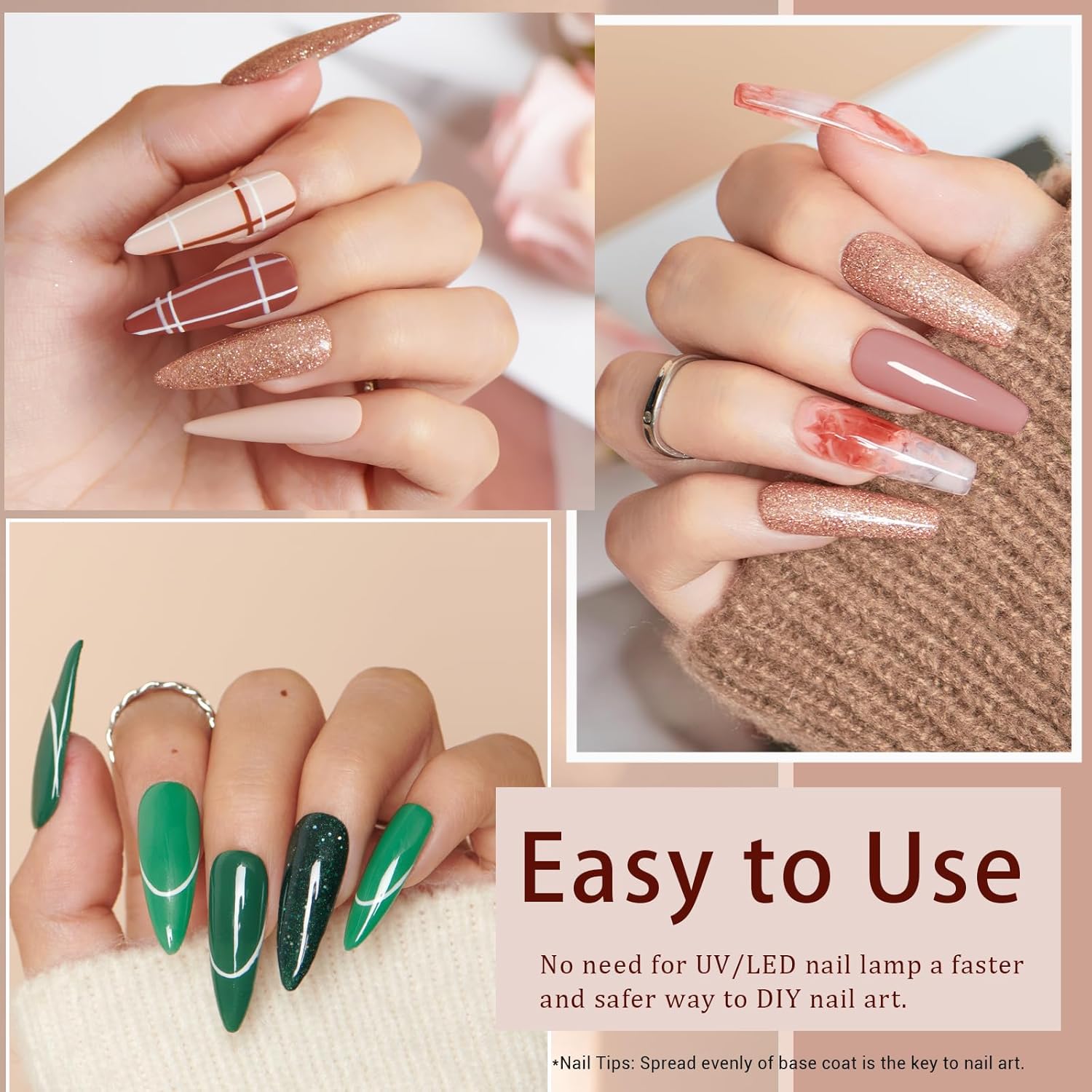 - 💅【No Need Nail Dryers & Easy to Use】Dip powder nail starter kit doesn't need an LED nail lamp to cure, dry faster, and be skin-friendly, which can avoid turning skin black and damaging nails. DIY your beautiful nails anytime, an ideal choice for professional manicurists and nail starters that make beautiful nails to catch the guys' eyes.