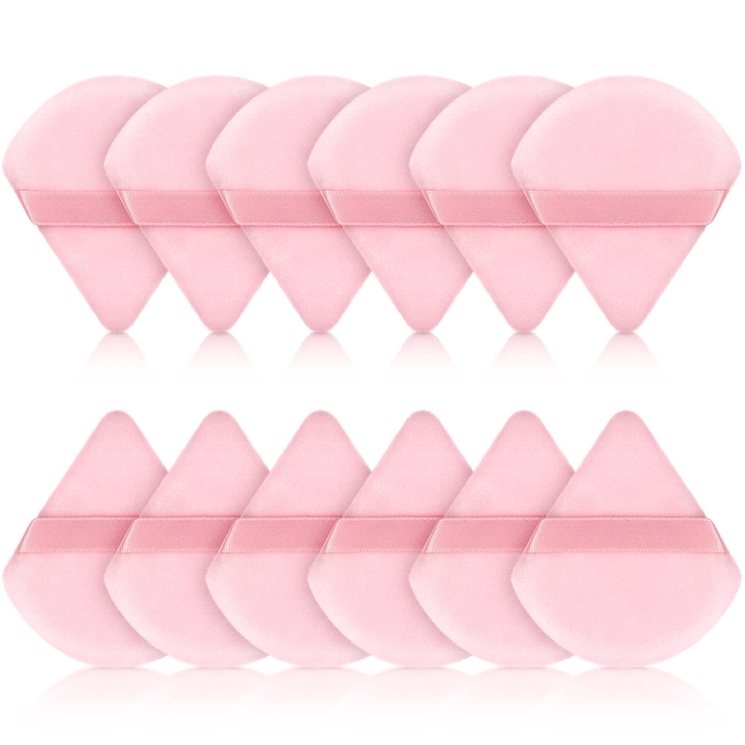 Maitys 12 Pieces Powder Puff Triangle Face Makeup Cosmetic for Loose Powder Soft Body Washable Reusable Foundation Sponge Mineral Wet Dry Makeup Tool for Women(Small,Pink)