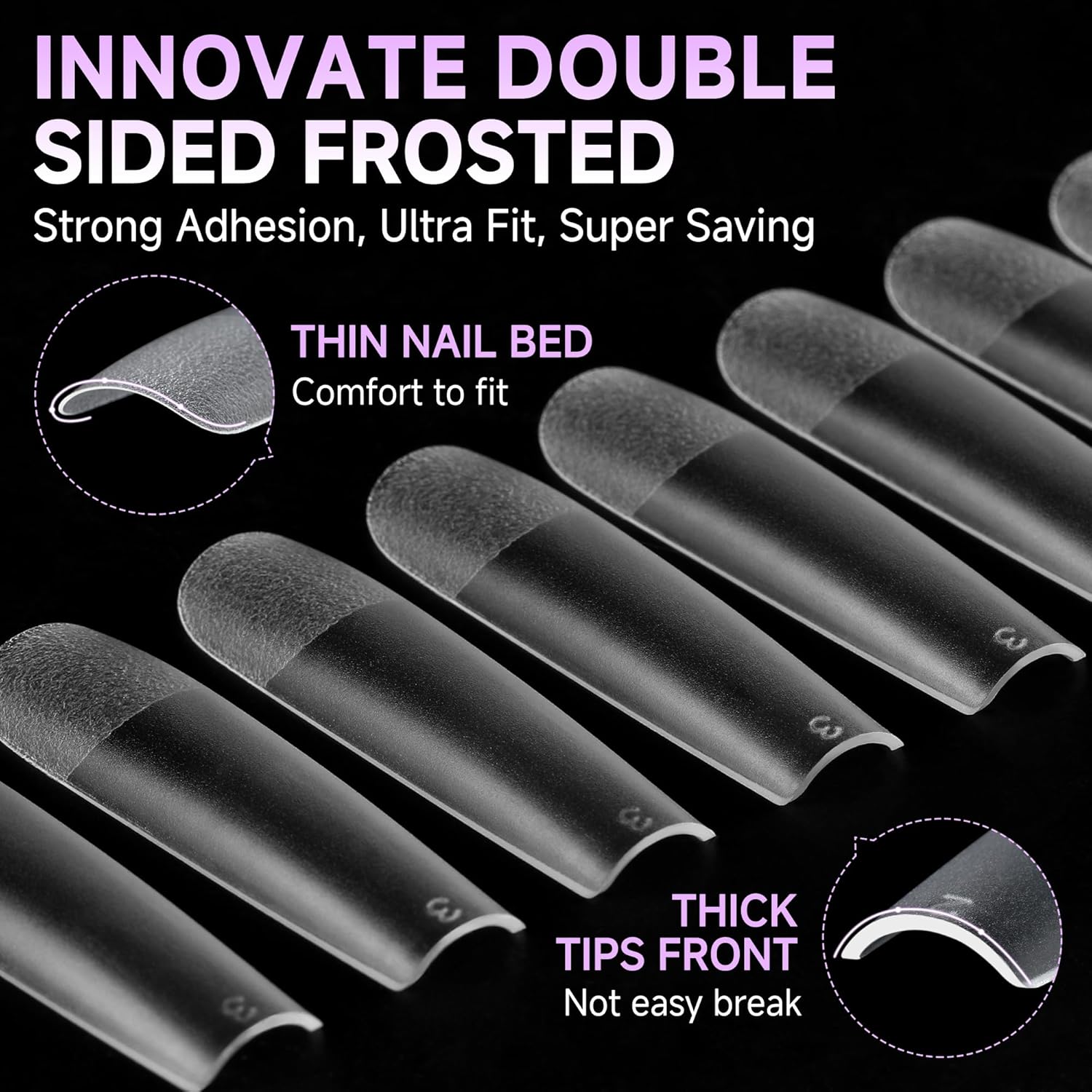 - Easy to Use: Our smooth edge of tips have a more shallow curve, convenient to press on nails beds tightly, without feeling uncomfortable "tightness", keep the color good without separation or exposure, your nails will look more naturally. Pre-shape tips no need file and saving much your time, more sturdy sticking.