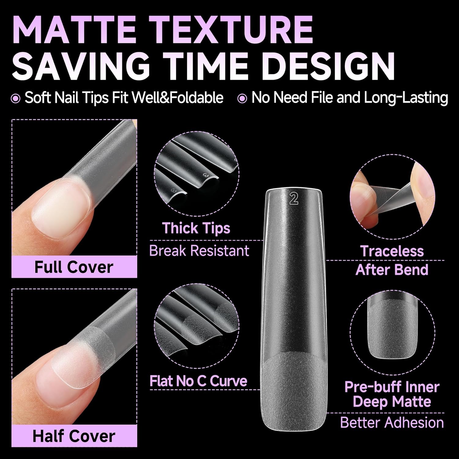 - ❤️Professional Long Square Shape Tips: Great extension Long Square fake tips show a great clear cover with premium innovate material soft gelly tips can be used with nail polish, dip powder, acrylic acrylic powder, easily make salon nail effect instead of dropping money at expensive salon!
