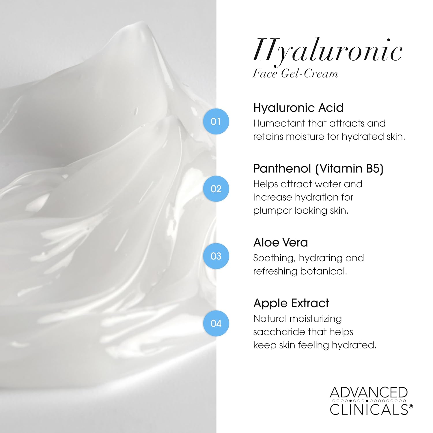 Advanced Clinicals Hyaluronic Acid Moisturizer Gel Face Cream W/Vitamin E + B5 | Hydrating & Vitamin C Face Lotion Hydrates Dry Skin & Improve Look Of Wrinkles & Fine Lines, 2 Fl Oz