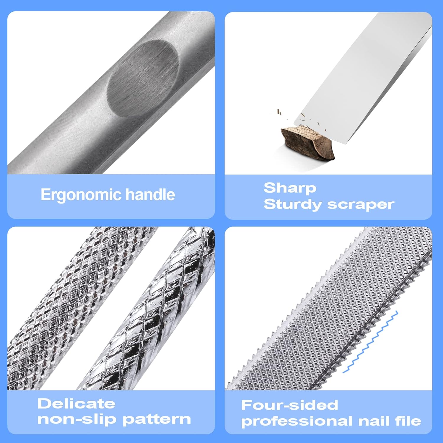 - PROFESSIONAL DESIGN - After several upgrades, test out the most scientific length and radian, the double nail file and double nail lifter lengthen out to 6.5 inches, lets both right and left -hands use easily, Precise arc can fit the feet so it can effectively removal dead skin