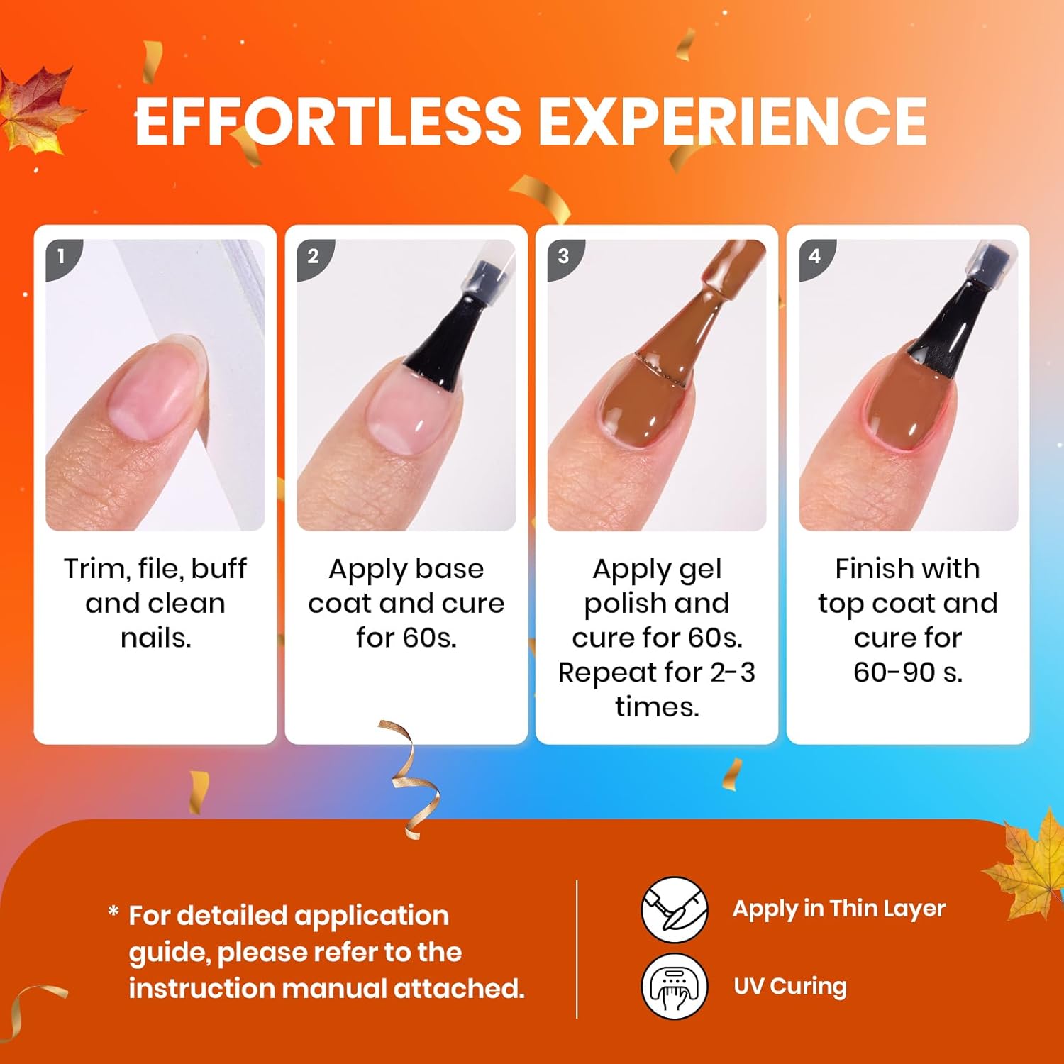 - 【Warm Tips】: Beetles fall nail fest gel polish set is professionally formulated for nail use only. Avoid contact with eyes, mouth and skin. In case of contact, rinse with water immediately. If you feel unwell, discontinue use and seek medical attention. If you have any questions about the product, please do not hesitate to contact us.