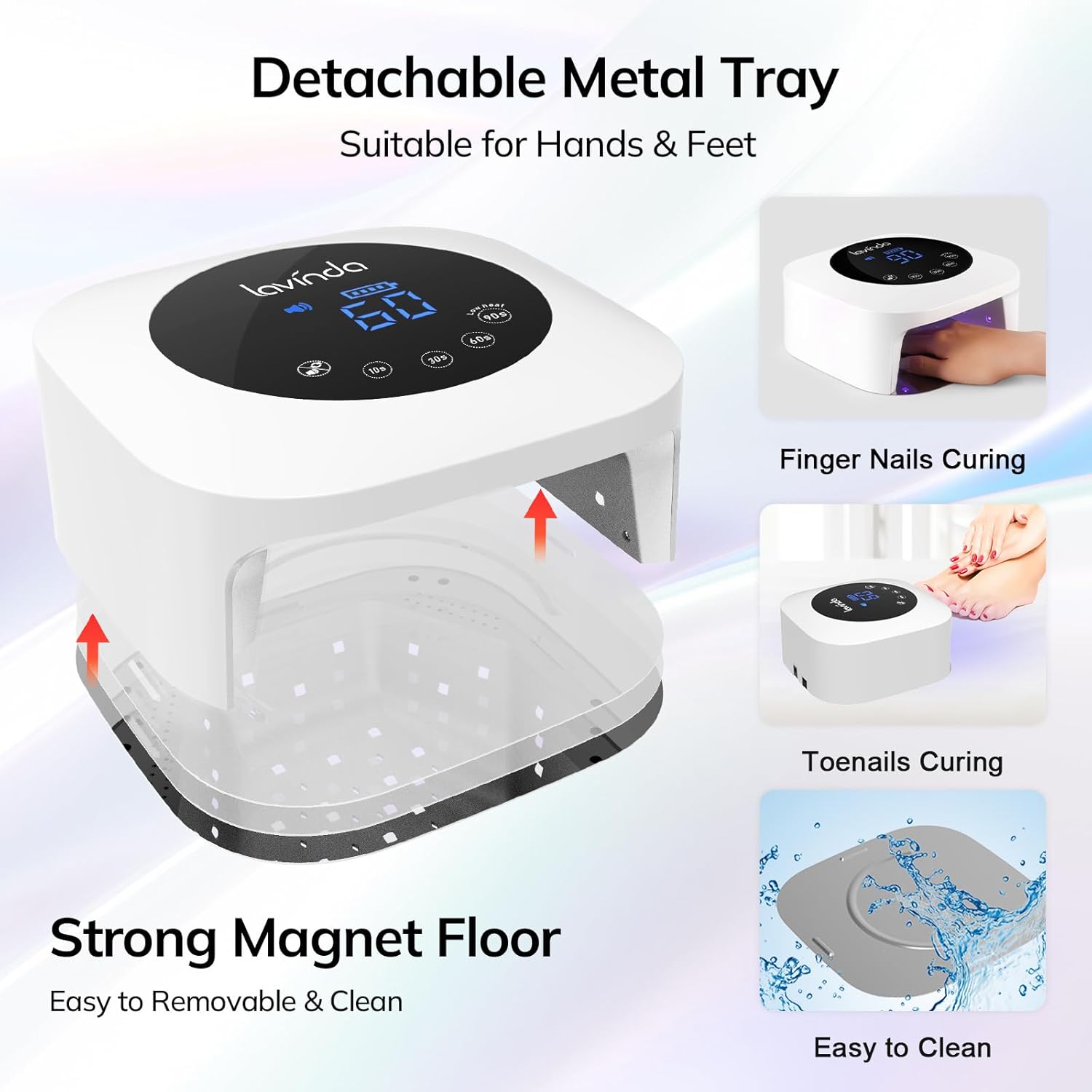 - 【Curing All Gel Nail Polishes】This nail dryer can fast cure with all nail gel brands, e.g.Base Coat, Top Coat, Color Gel, Hard Gels, Poly Gels, Builder, Acrylic, Sculpture gel, gem glue, etc.(not for regular nail polish.) Enjoy high-quality salon manicures at home with your friends and family. If you have any problem with the Lavinda gel nail lamp, please contact us through "contact sellers", and we will offer you a satisfactory solution within 24 hours.
